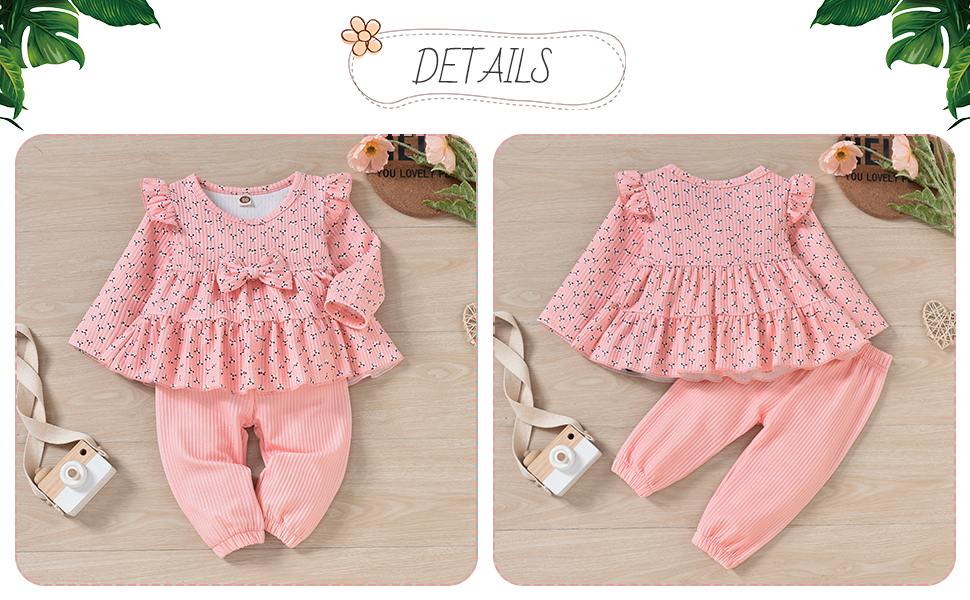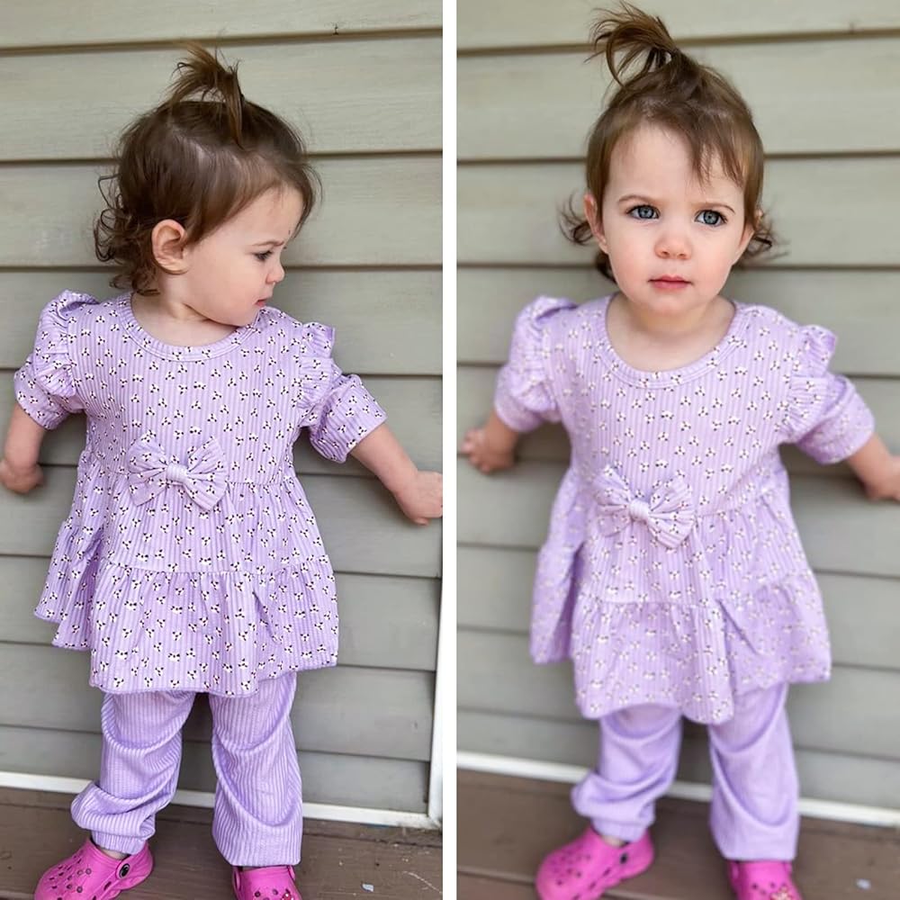 🌼🌻الخامة: مصنوعة من مزيج القطن الناعم، هذه المجموعة المكونة من قطعتين ستكون فكرة هدية رائعة للفتيات الصغيرات أو أعياد الميلاد أو بدون سبب. يتميز بجزء علوي لطيف كما يمكن أن يكون، وتفاصيل مكشكشة من البيبلوم. إلى جانب السراويل الضيقة سهلة الارتداء للحصول على خيار رائع للملابس