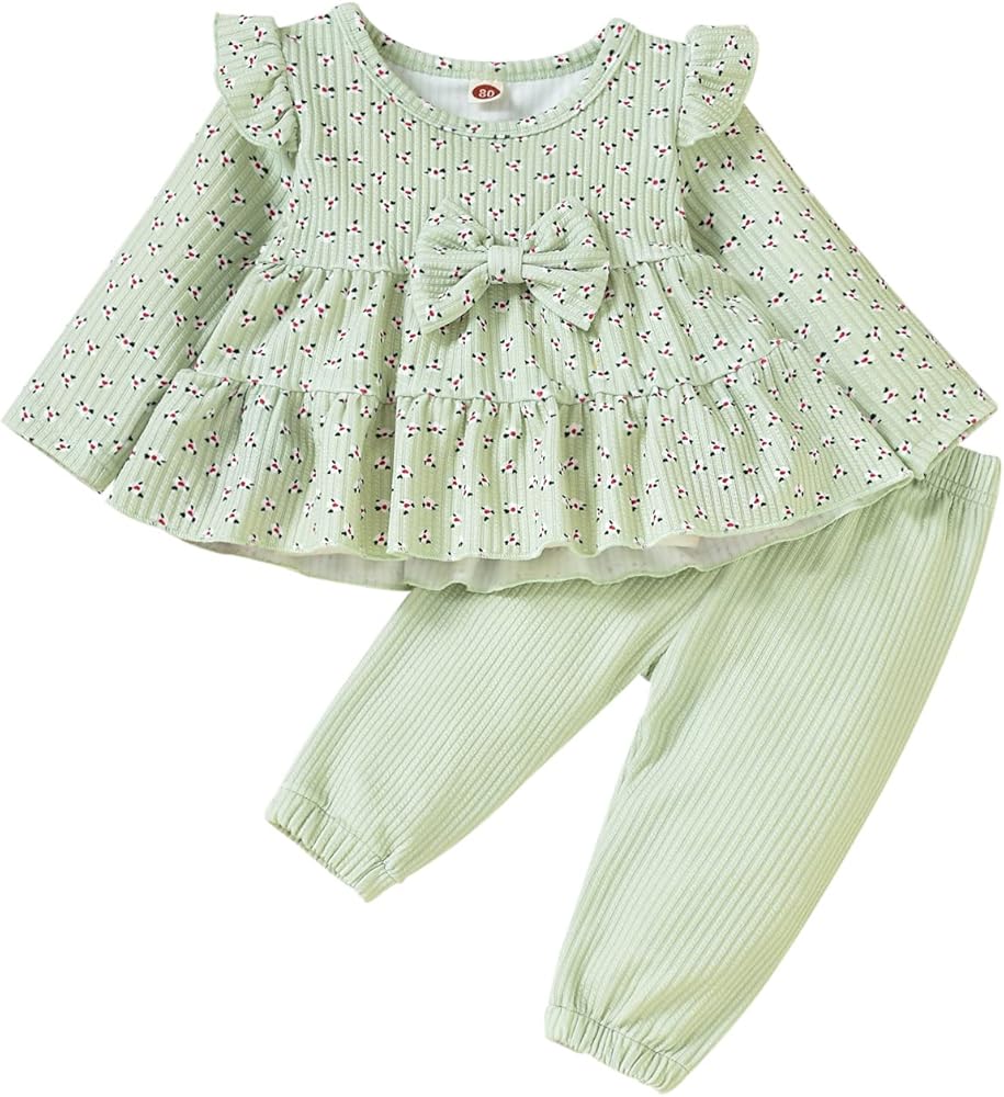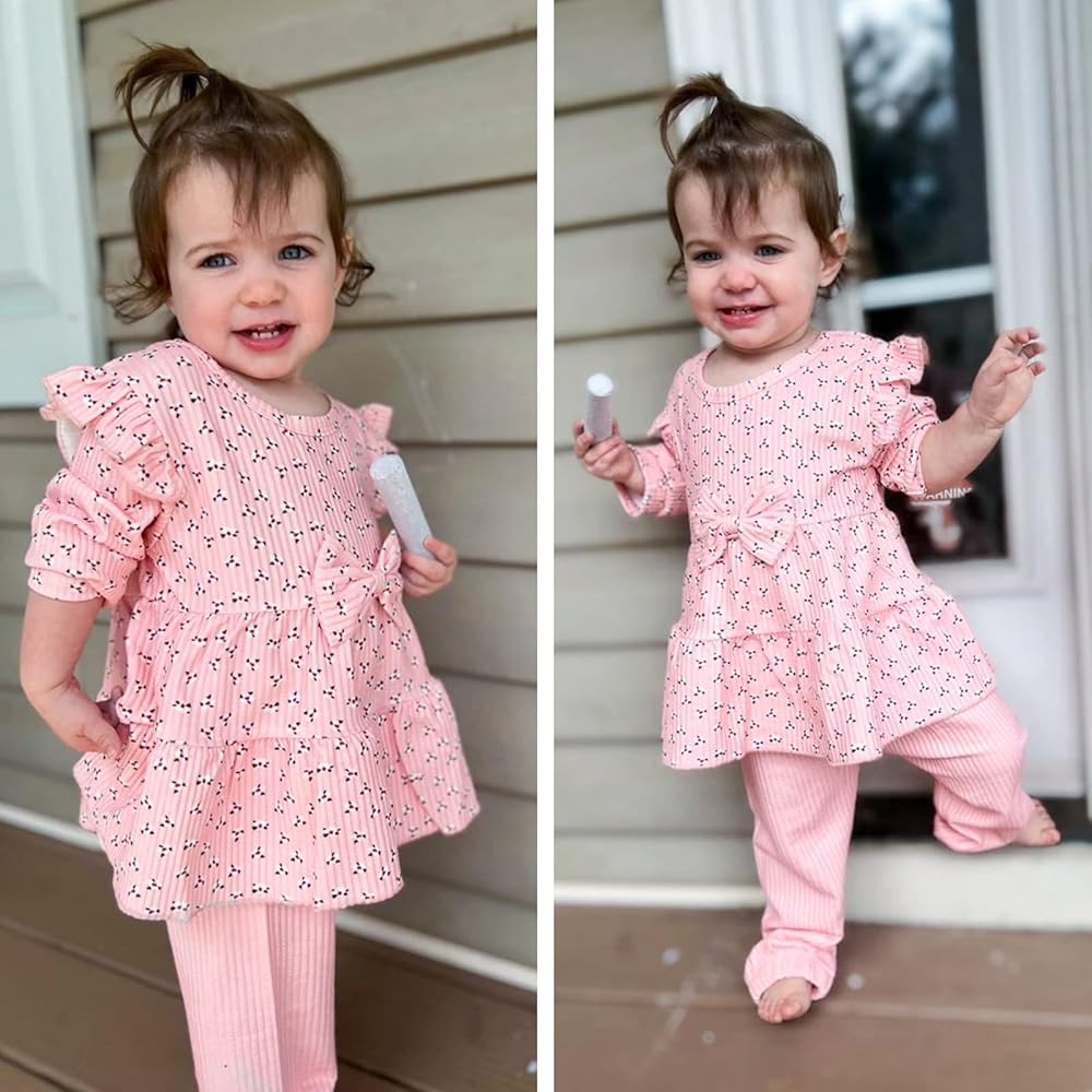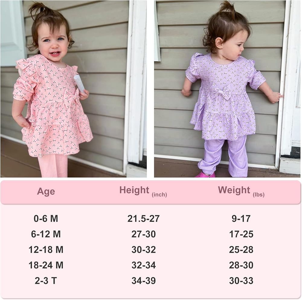🌼🌻المقاس: مجموعة ملابس عصرية للفتيات الصغيرات رائعة للأطفال بعمر 0-6 أشهر و6-12 شهرًا و12-18 شهرًا 2T 3T