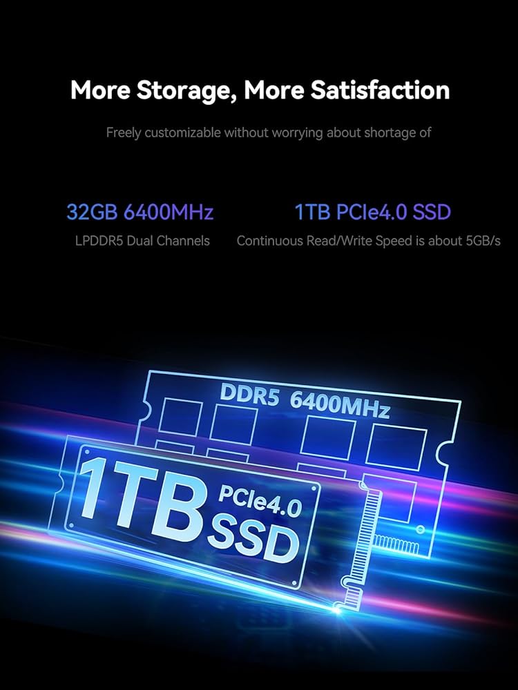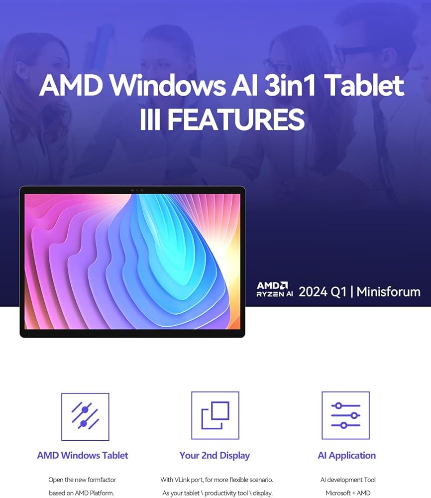 【أداء رائع】MINISFORUM V3 هو أول كمبيوتر لوحي عالي الأداء AMD AI Windows 3 في 1. يأتي مزودًا بمعالج AMD Ryzen 7 8840U (8C/16T، حتى 5.1 جيجا هرتز) الذي يدعم معالج AMD Ryzen AI، مع بنية Zen 4 CPU وبنية RDNA3 GPU. تم تسريع أداء الحوسبة لوحدة NPU من 10TOPS إلى 16TOPS، وتم تحسين أداء معالجة الذكاء الاصطناعي الناتج بمقدار 1.4 مرة مقارنة بالجيل السابق من سلسلة Ryzen 7040.