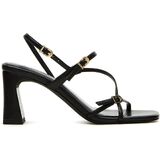 【صنادل كلاسيكية بكعب عالٍ مفتوح عند الأصابع】كعب عالٍ أسود للسيدات، هذا التصميم البسيط والأنيق ذو الأشرطة الرفيعة يستخدم نعلًا مطاطيًا ونعل خارجي من المطاط اللدن حراريًا لهذا النعل ذو الكعب المربع يعزز الاحتكاك والثبات.