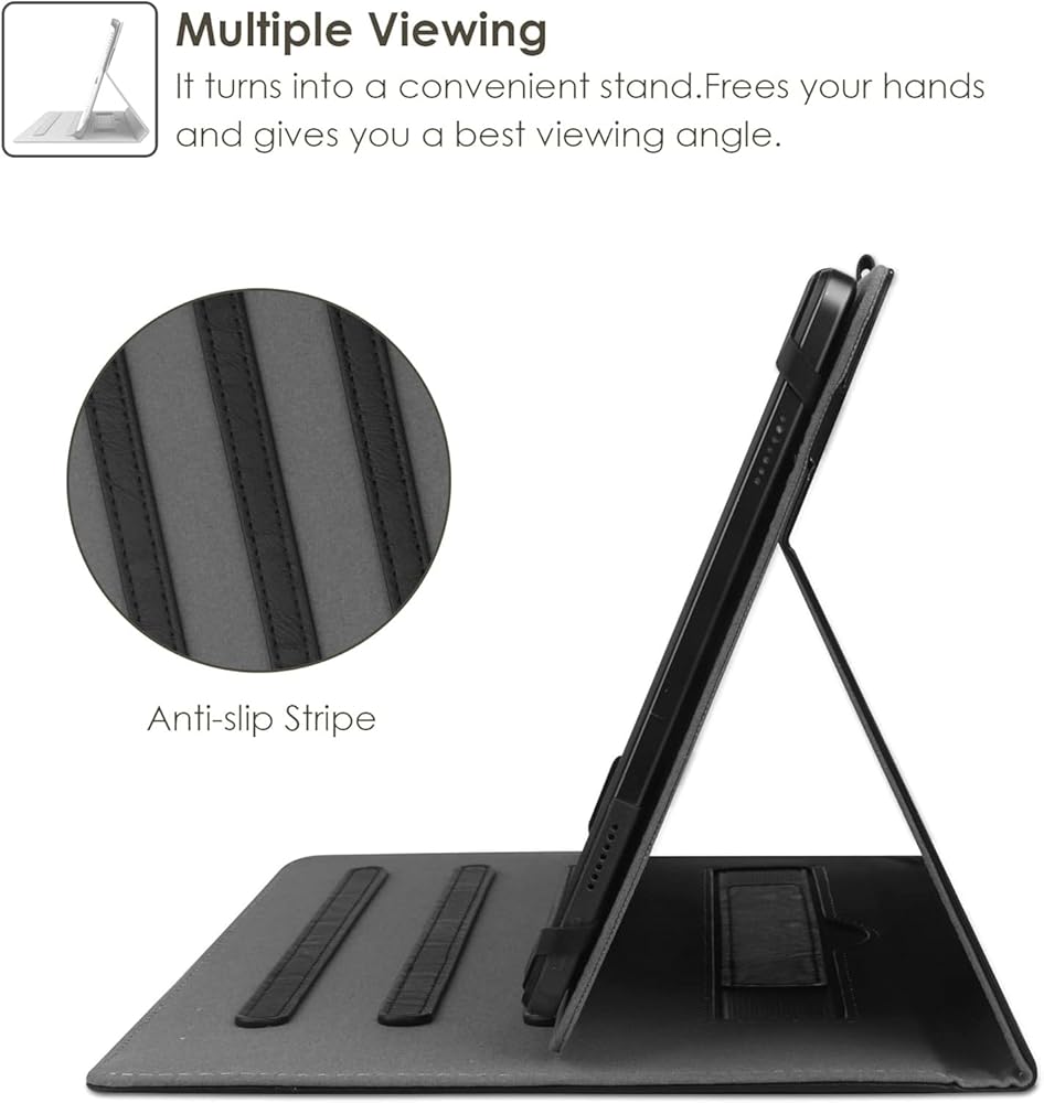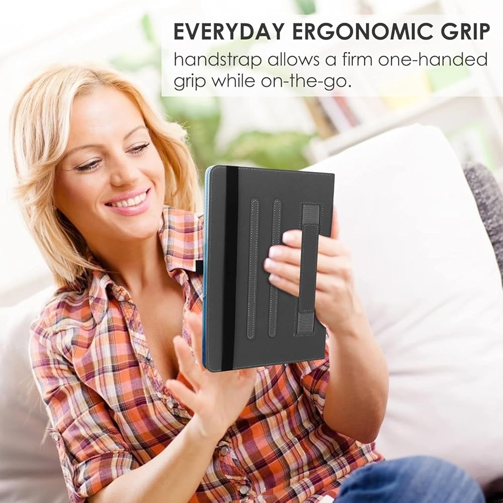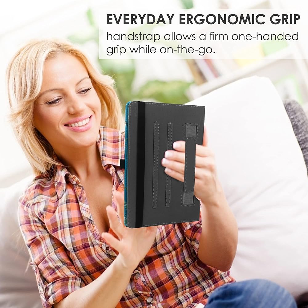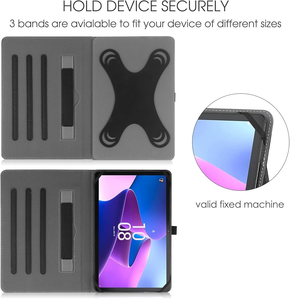 • 【 HIGH QUALITY MATERIAL 】-10 inch tablet case android with premium synthetic PU leather exterior protect the tablet from scratches, impacts, dust or any other daily damage.The Outside Elastic band secures the case closure, easy snap on and off,The internal hand strap for comfortable one-handed use