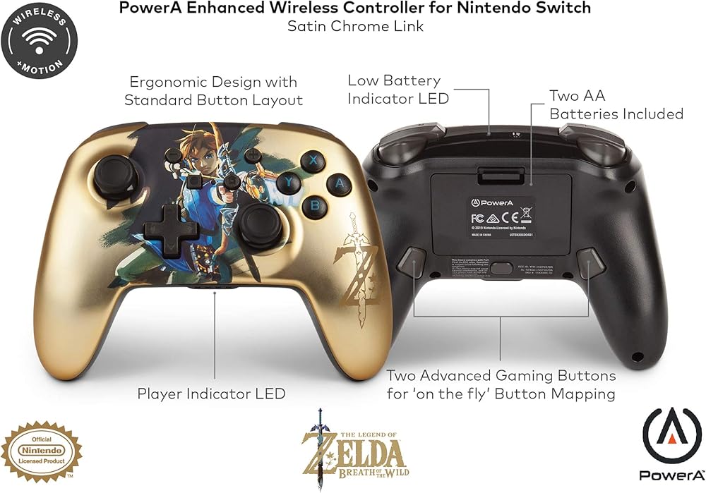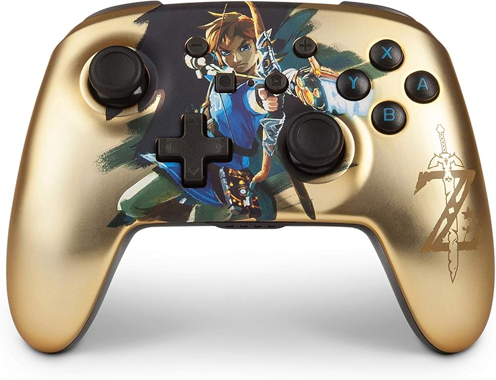 Play your favorite Nintendo Switch games like a pro with this officially licensed PowerA Enhanced Wireless Controller featuring Link design on gold satin chrome.