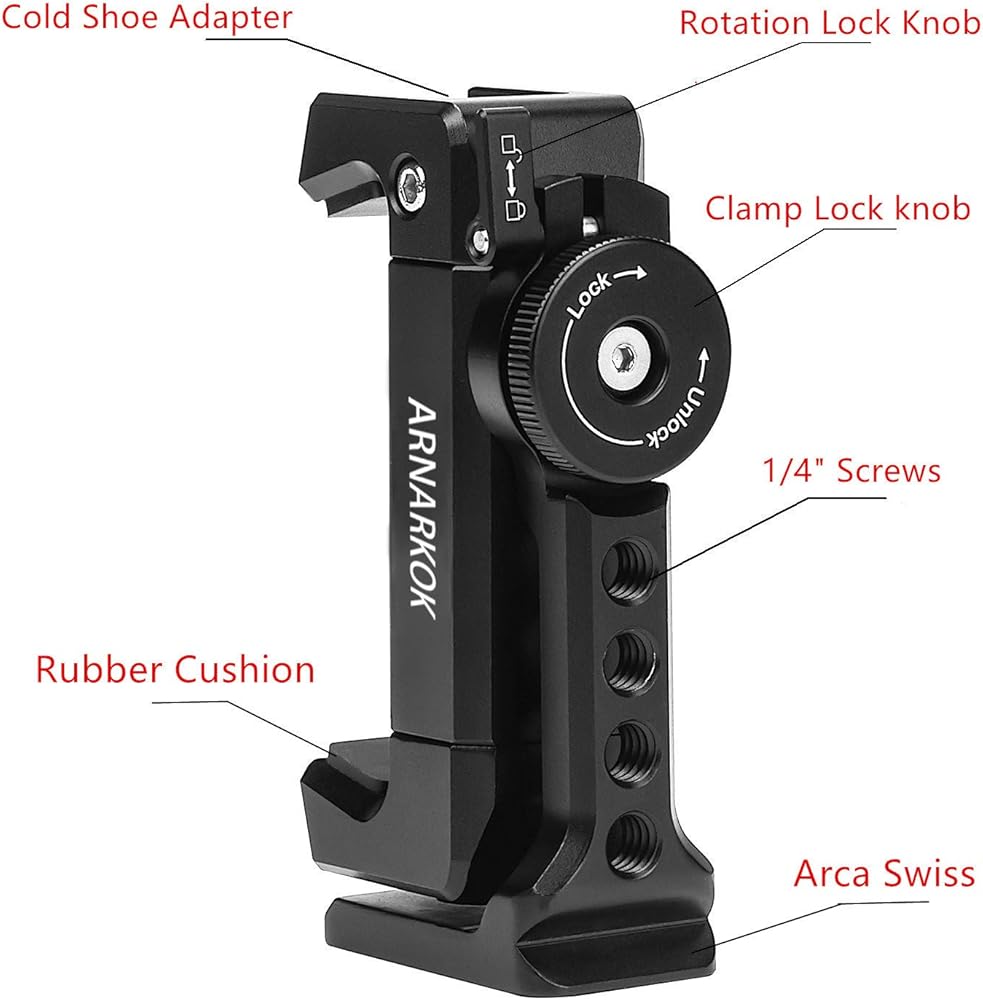 حامل ثلاثي القوائم معدني للهاتف مع قاعدة باردة للتصوير بزاوية 360 درجة! حامل هاتف خلوي على شكل حرف L، تصميم فريد يدور 360 درجة، يسمح لك بالتبديل السريع في الأشكال الأفقية والرأسية ويمكن تعديل زوايا التصوير المختلفة الأخرى حسب رغبتك.