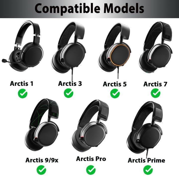 【مصممة لـ SteelSeries Arctis 】تتوافق وسادات الأذن البديلة مع SteelSeries Arctis 1، Arctis 3، Arctis 5، Arctis 7/7+/7P/7P+/7X/7X+، Arctis 9/9X، Arctis Pro، Arctis Prime.[ملاحظة :غير مناسب لسلسلة SteelSeries Arctis Nova. يرجى التحقق من طراز سماعة الرأس قبل الشراء!