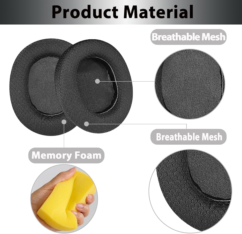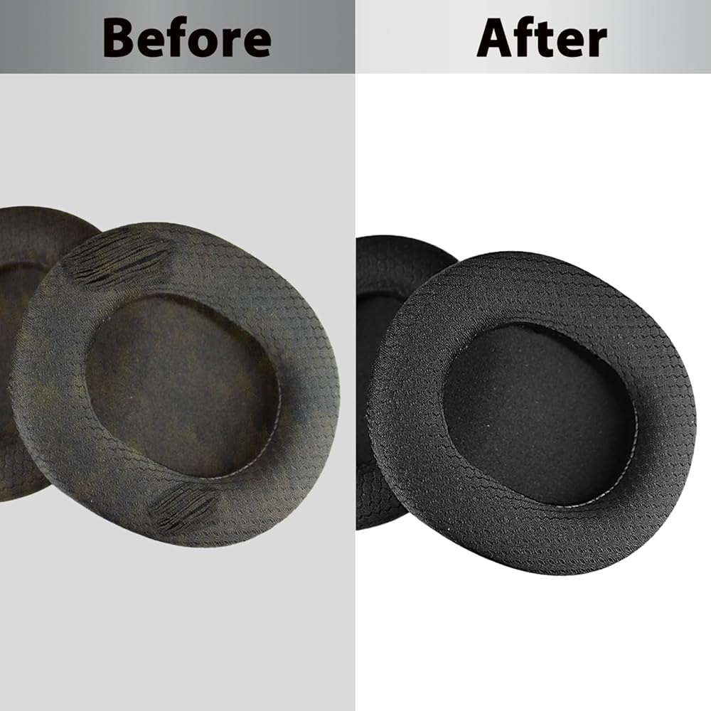 【نسيج شبكي مسامي】وسائد الأذن المصنوعة من القماش الشبكي يمكن أن تجعل ارتداء سماعات الرأس أكثر راحة في الطقس الحار من الجلد البروتيني. لن ينزلق القماش الشبكي عالي الجودة عند التعرق مثل الجلد البروتيني، ويمكن أن يلعب تأثيرًا معينًا مضاد للانزلاق.