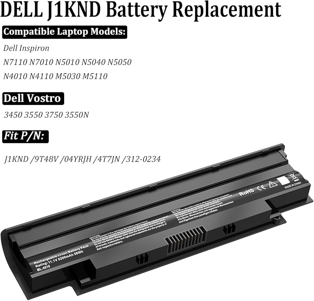 • Original Laptop Battery Replacement: 4 Cells 7.6V 55WH Li-ion Polymer battery, Up to 500 Recharge Cycles Over Battery Life, Replace Part Number: J60J5 R1V85 451-BBSX 451-BBSY 451-BBSU MC34Y 242WD PDNM2 0MC34Y
