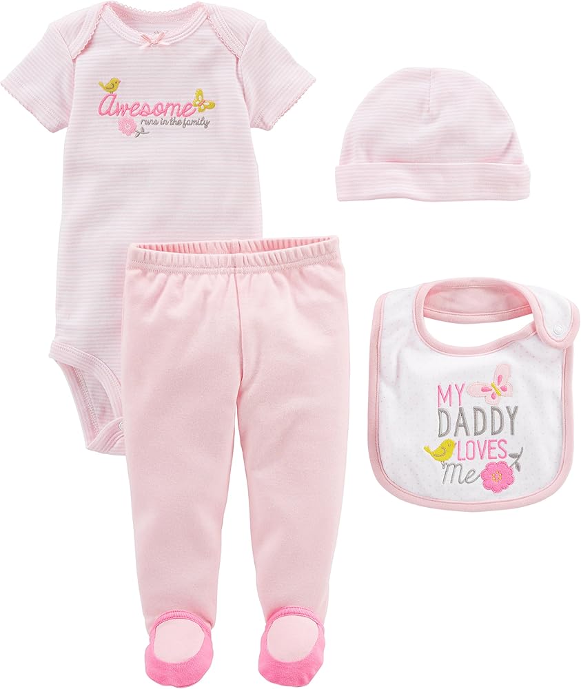 مجموعة Simple Joys من Carter's Baby للفتيات مكونة من 4 قطع وبنطلون ومريلة وقبعة