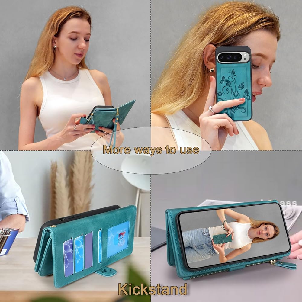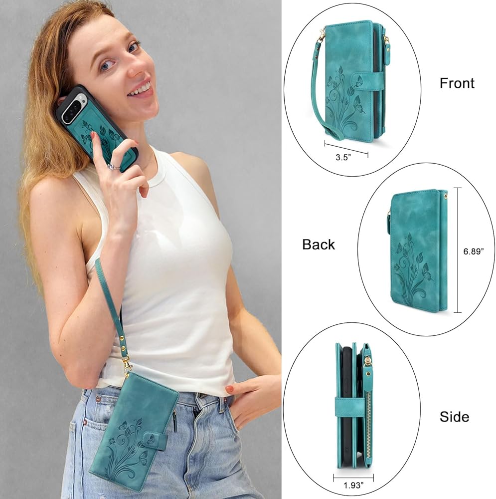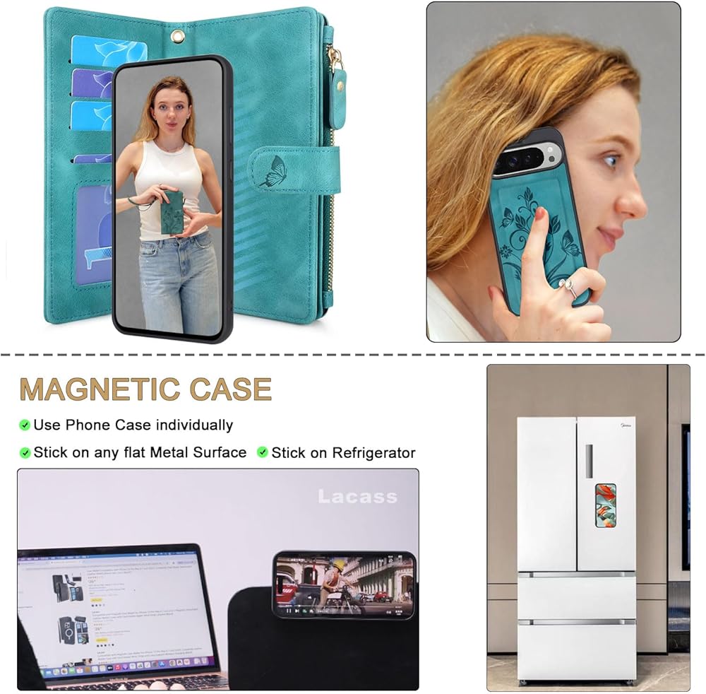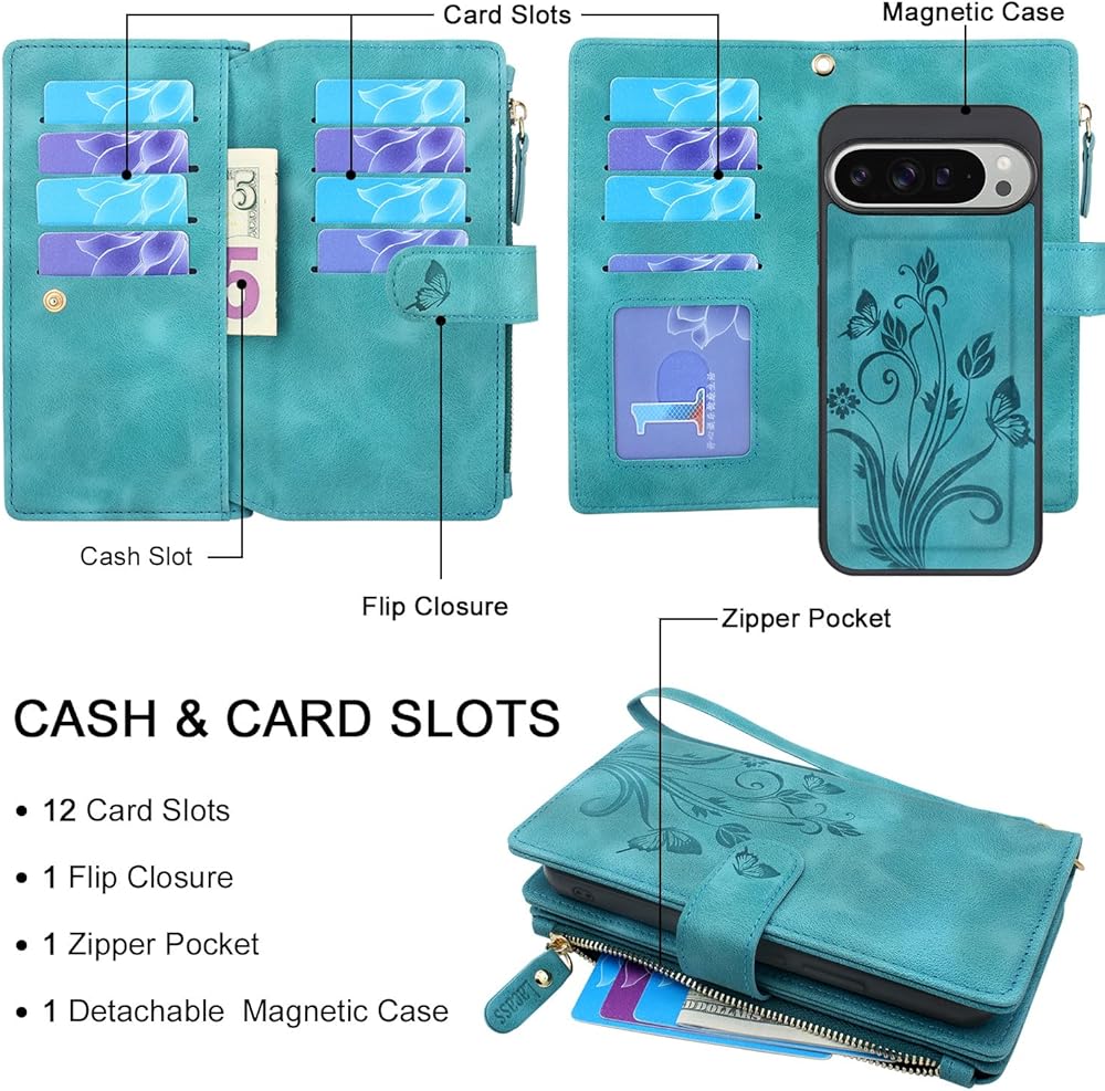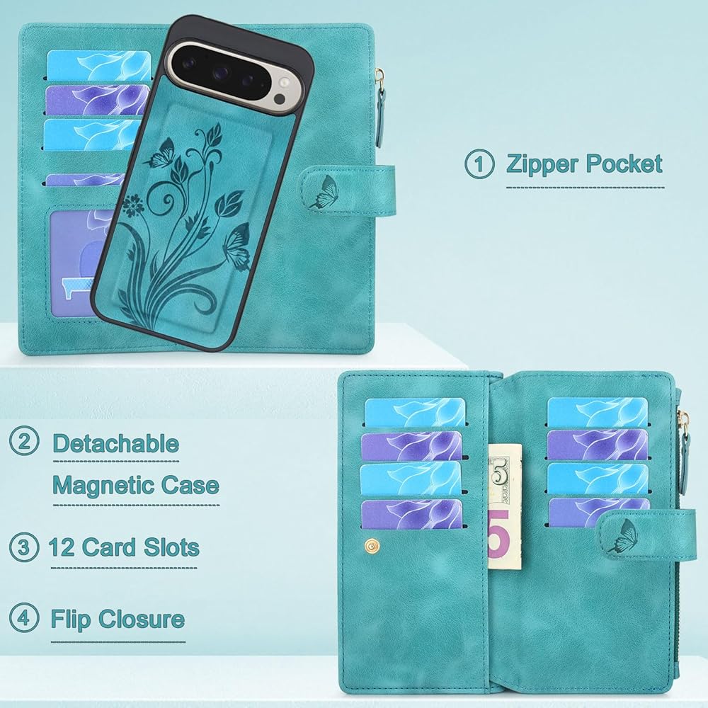 • غطاء محفظة بسحاب مغناطيسي قابل للفصل 2 في 1 مصمم خصيصًا لهاتف Google Pixel 9 Pro XL 6.8 بوصة 2024. يرجى التحقق من طراز هاتفك قبل شراء الطلب.