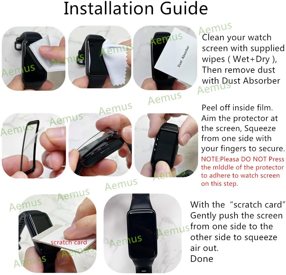 Easy Installation : Just peel off the back of the protector,align the screen ( Please read the instruction manual ) If there are small bubbles on the dial,Just push them to the edge, and then press the with your thumb
