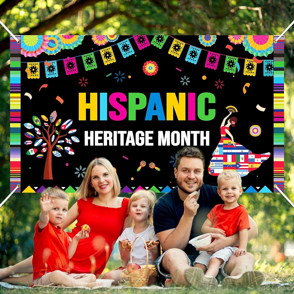 لافتة شهر التراث الإسباني - XtraLarge خلفية التصوير الفوتوغرافي لشهر التراث الإسباني الوطني في أمريكا اللاتينية البلدان الناطقة بالإسبانية، لوازم تزيين لافتة الترحيب، دعائم كشك الصور