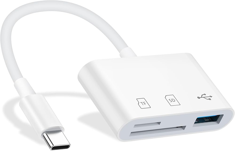 3 IN 1 SD Card Reader with SD, MicroSD and USB Ports for iPhone 15/iPad/Mac/Android Devices