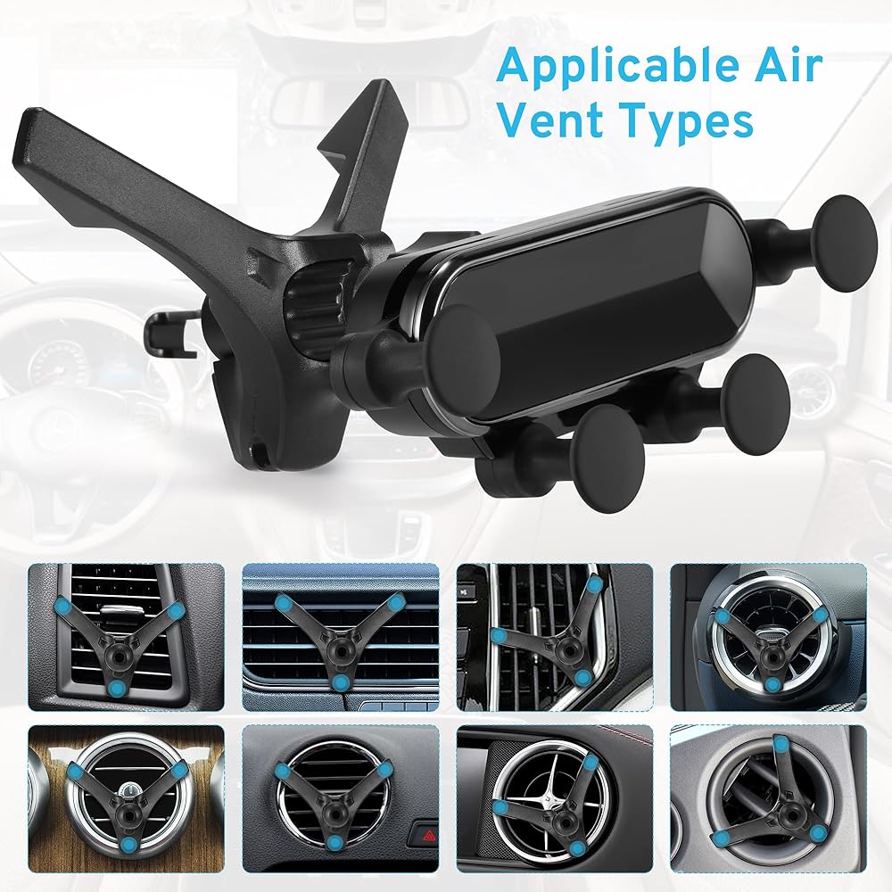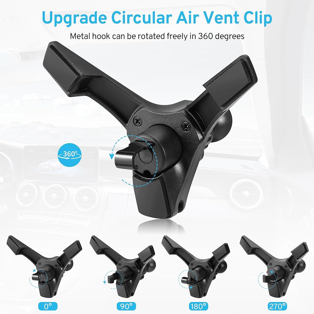 • 【خطاف تهوية مطور】: يتميز حامل الهاتف بتصميم على شكل حرف V، ويشكل هذا التصميم ثلاثي النقاط نقطة قبضة ثلاثية يمكن ربطها بإحكام حول فتحة مكيف الهواء، حتى لا تنزلق أو تتحرك بسهولة عندما أنت تقود. ملاحظة: طول المشبك بين 0.39-1.42 بوصة.