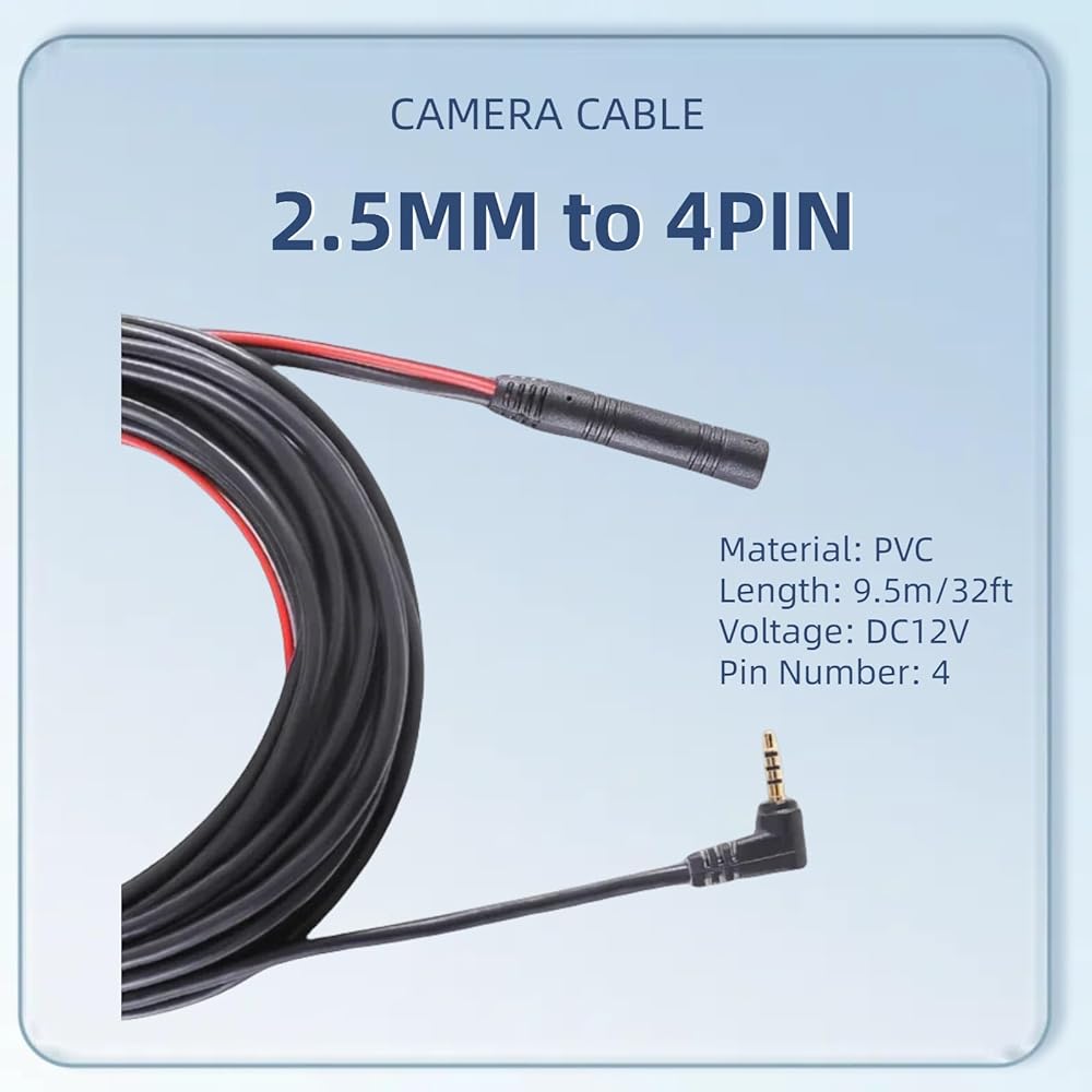 كابل كاميرا احتياطية 2.5 ملم إلى 4 دبوس (سلك تمديد 32 قدم/9.5 متر لتوصيل كاميرا الرؤية الخلفية وتشغيل 4 دبوس كابل فيديو للكاميرا الاحتياطية للمركبة