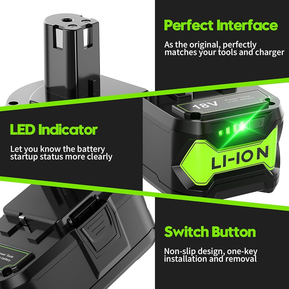• With Led Indicators--Our 18V battery for Ryobi has 3 LED indicators can show battery power and usage level. In addition, our 18V Lithium-ion battery is the same as the original battery in both appearance and size, and it is as easy to install and remove as your original battery