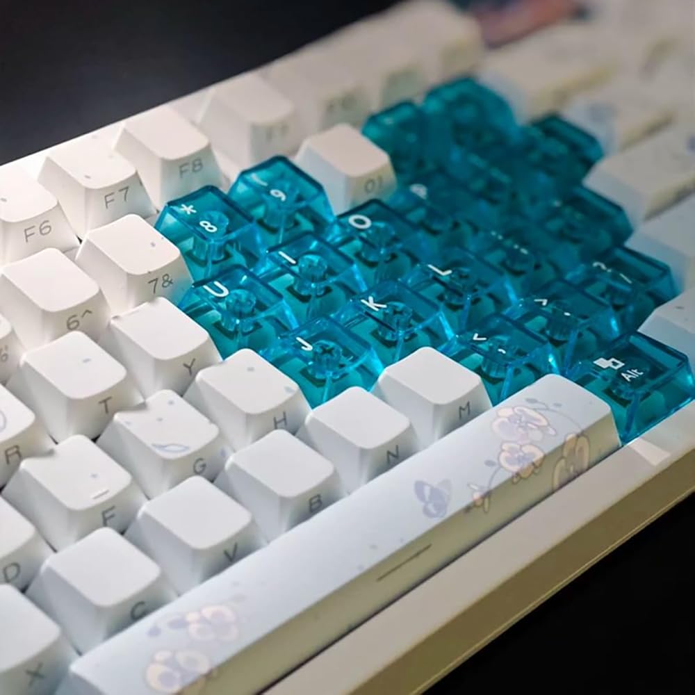 【Custom Keycaps】This clear keycaps set suitable for 60% 65% 70% keyboards like rk61,gk64,gk61,gk68,rk68,rk84,gh60,etc.These mechanical keyboard keycaps are compatible with cherry mx,gateron,kailh,outemu and any key switches with cross-shaped switches.