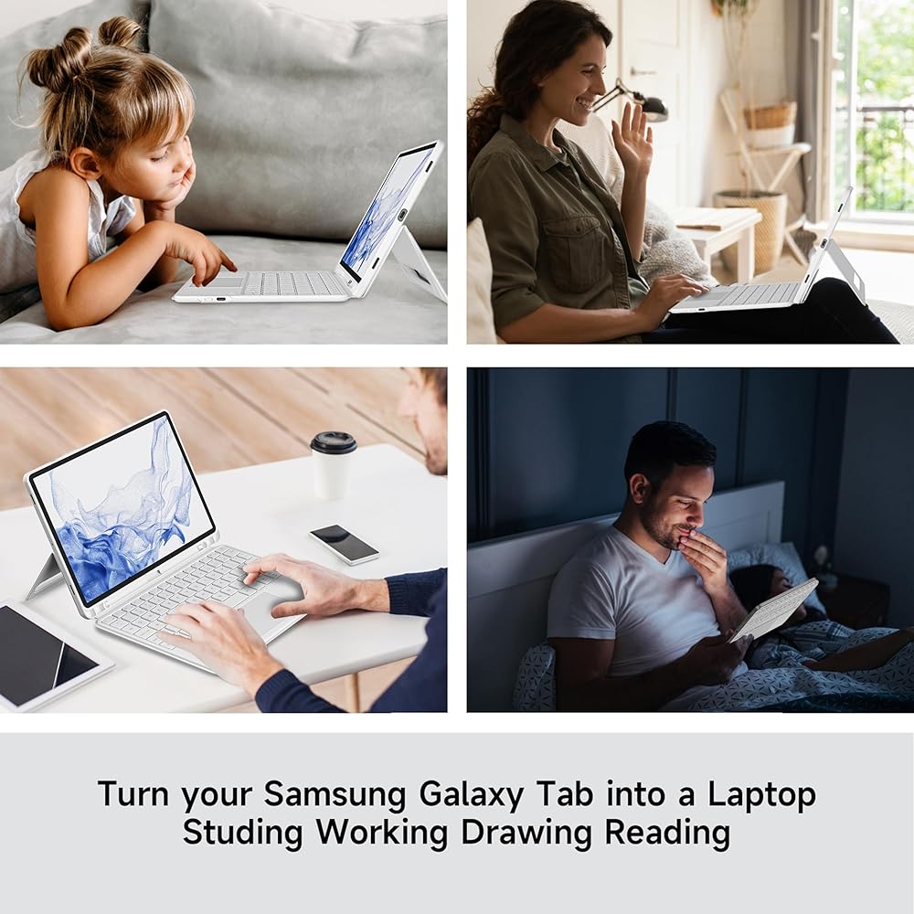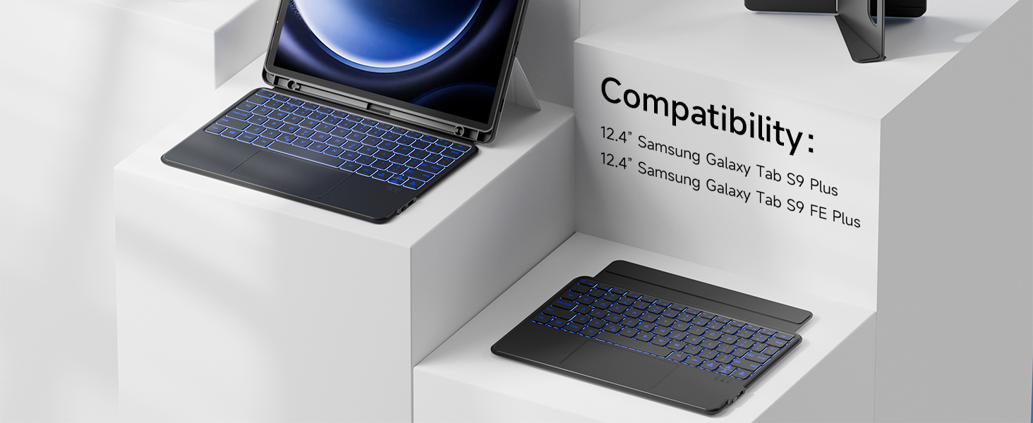 حافظات لوحة المفاتيح nimin القابلة للفصل مصممة خصيصًا لجهاز Samsung Galaxy Tab S9+ وSamsung Galaxy Tab S9FE+ مقاس 12.4 بوصة، وتحتوي على لوحة مفاتيح وحافظة، وحامل قلم S مدمج، ولوحة تتبع، وإضاءة خلفية بـ 7 ألوان و3 مستويات من سطوع الإضاءة الخلفية قابلة للتعديل، ونوم تلقائي /Wake.حوّل جهاز Samsung Galaxy Tab الخاص بك إلى كمبيوتر محمول في أي وقت وفي أي مكان!
