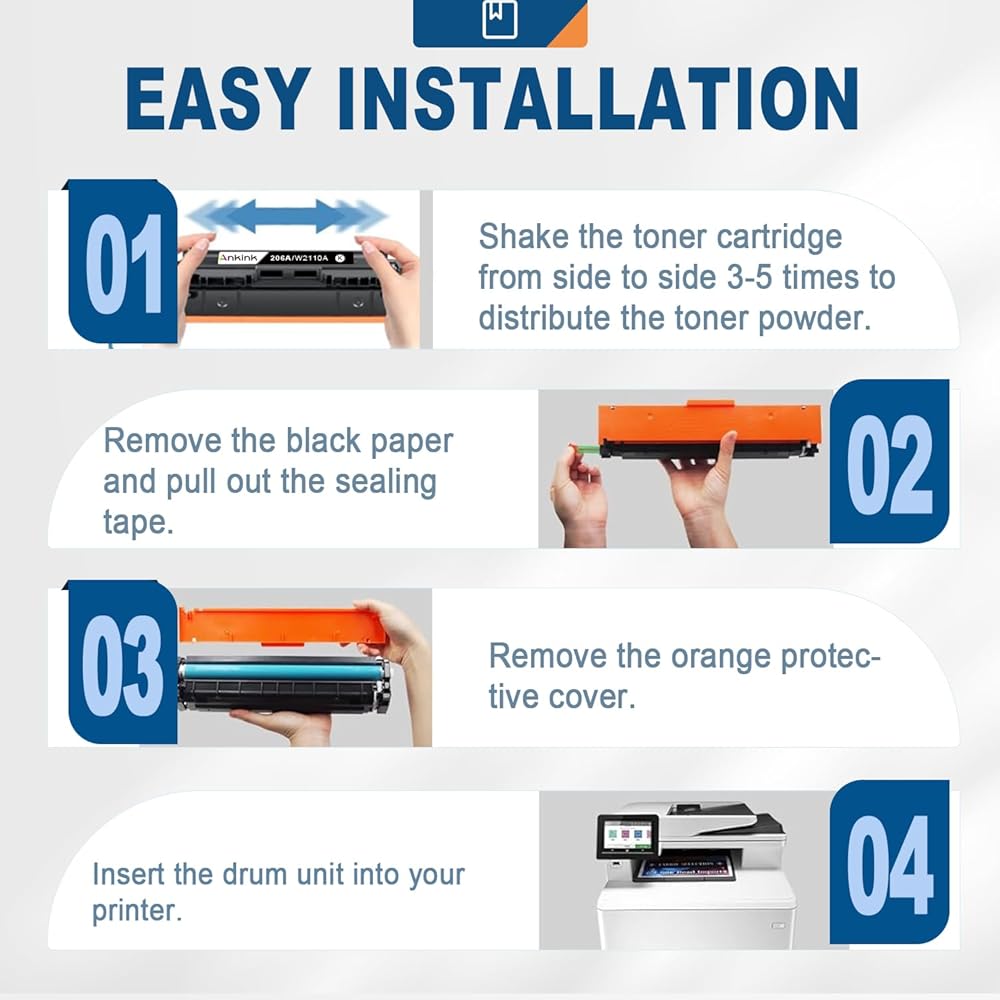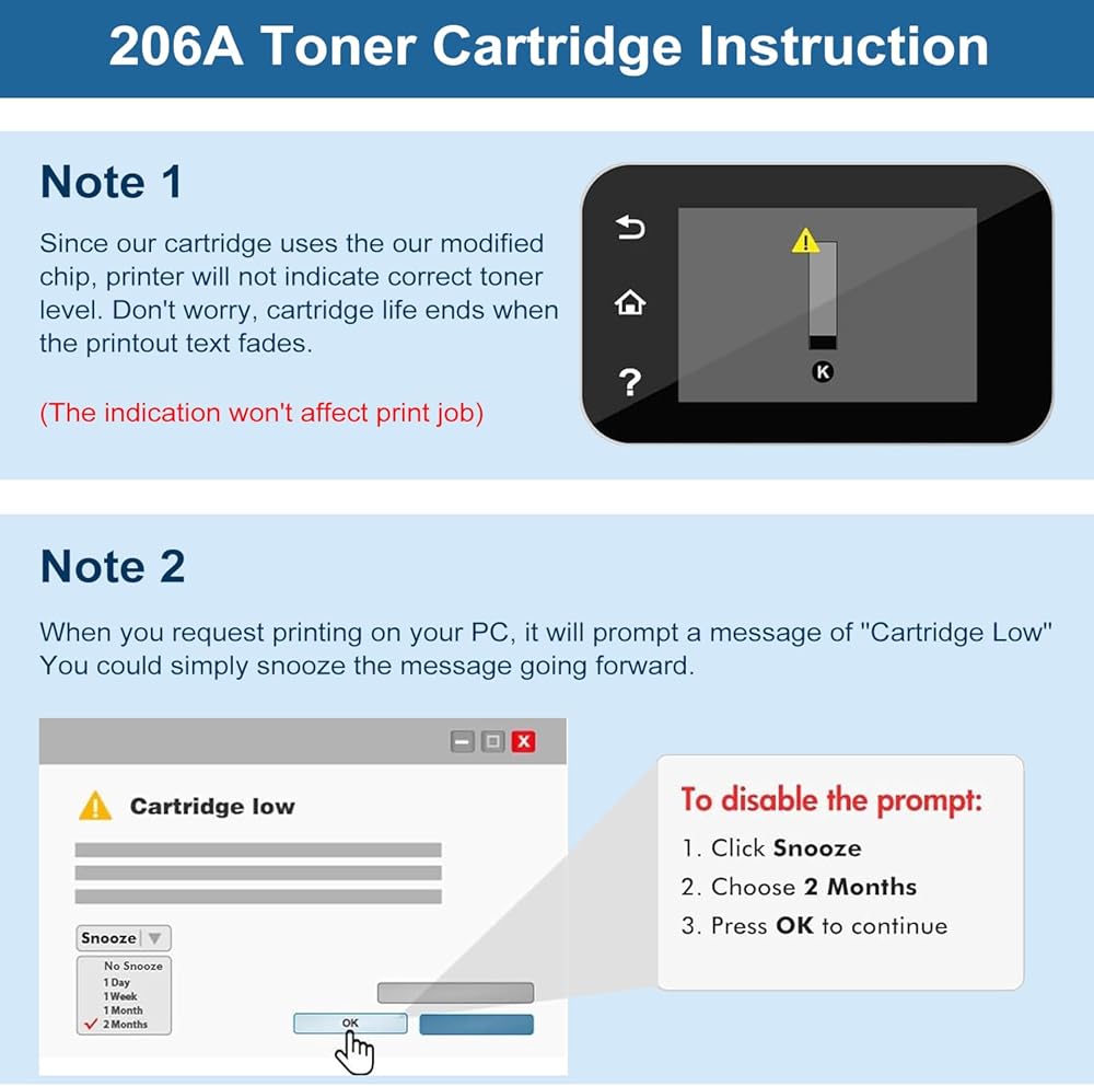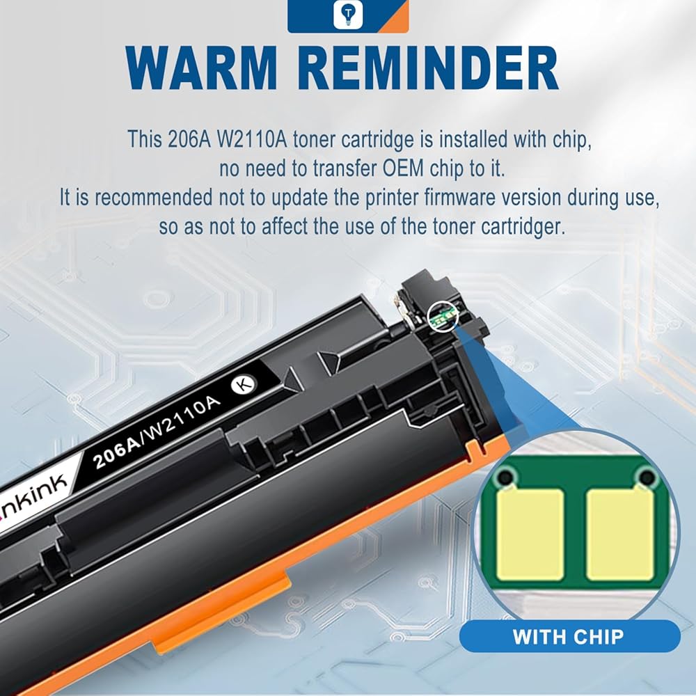 مع الرقاقة: تحتوي خراطيش الحبر المتوافقة لدينا على رقائق، فلا حاجة لإزالتها وتثبيتها على خراطيش الحبر 206a 206x