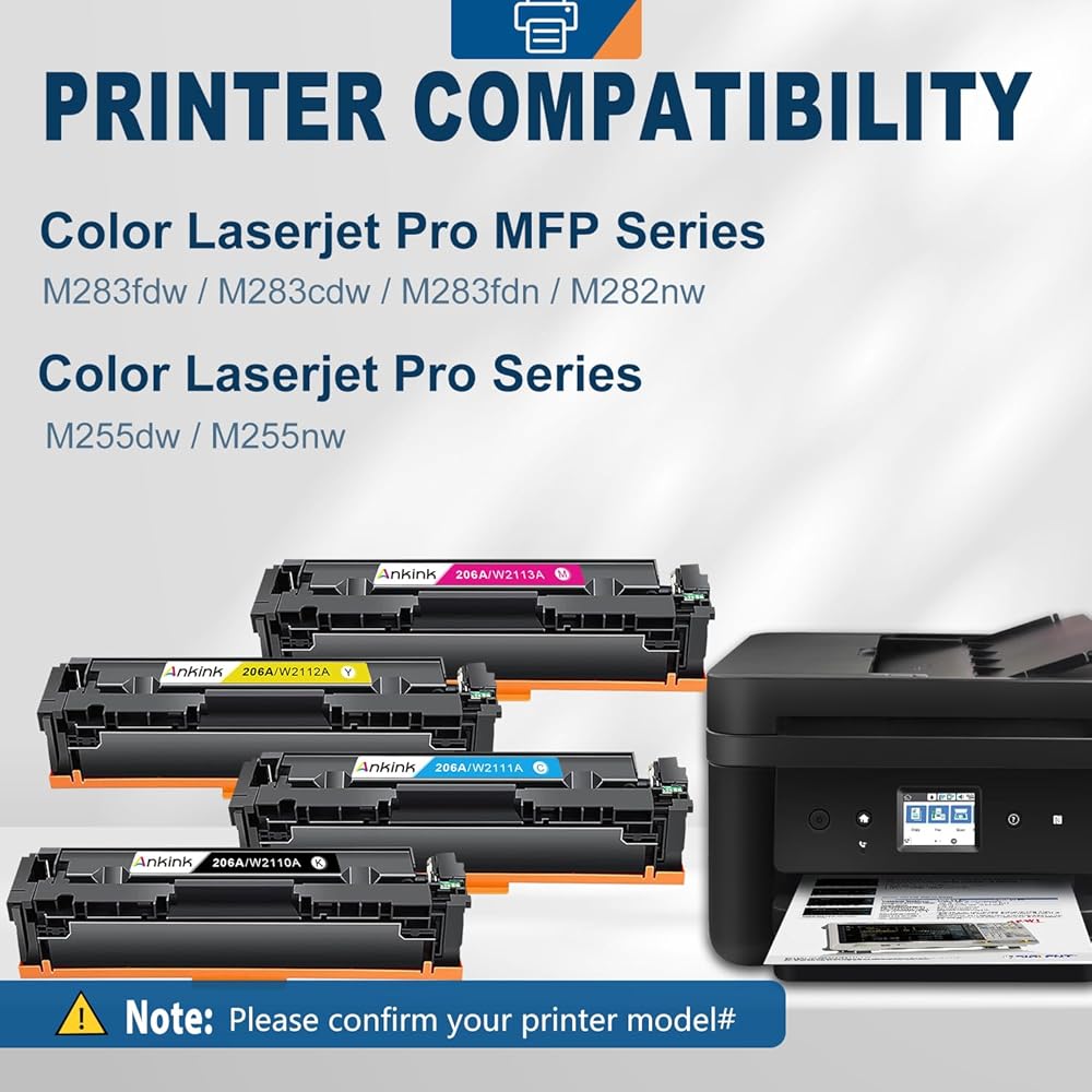 استبدال خرطوشة الحبر المتوافقة لـ HP 206A 206X (مع رقاقة، أسود سماوي أصفر أرجواني، مجموعة من 4 قطع) لـ Color Laserjet Pro MFP M283fdw M283cdw M283fdn M282mw M255dw M255nw M283 M255 W2110A W2110X