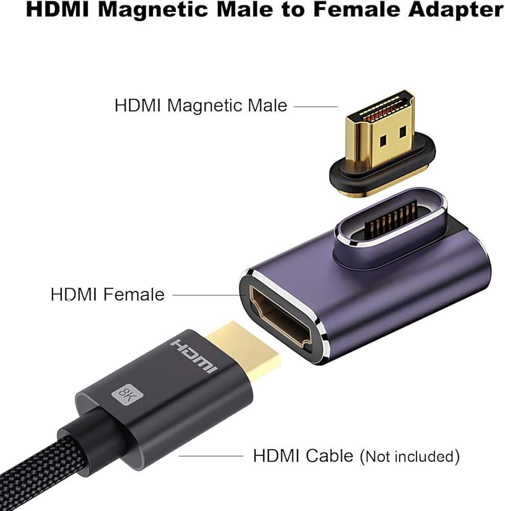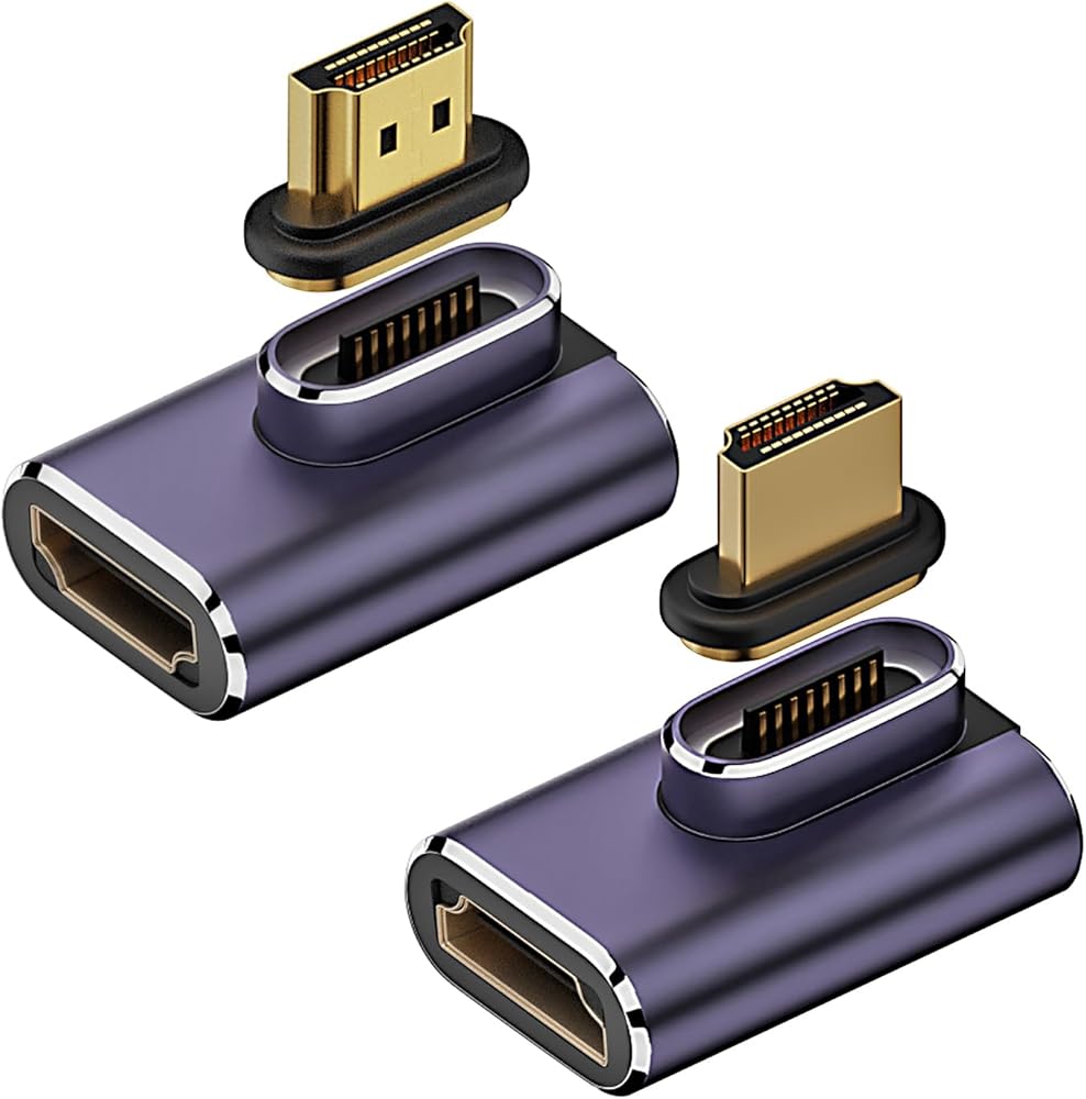 AreMe 8K HDMI 2.1 Right Angle Magnetic Adapter (2 Pack), Left&Right 90 Degree and 270 Degree HDMI Male to HDMI Female Extender Connector Aluminum Alloy