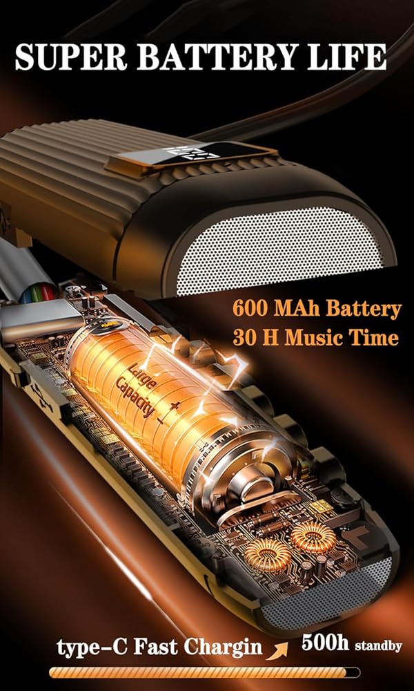 【ممارسة التمارين بدون توقف لمدة تصل إلى 25 ساعة】تعتمد سماعات الرأس اللاسلكية على تقنية الشحن السريع، وتوفر لك 25-30 ساعة من متعة الموسيقى مع شحن سريع لمدة ساعة واحدة فقط. سيُظهر شحن البطارية المتبقي لسماعات الرأس على شاشة LED.