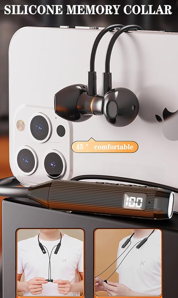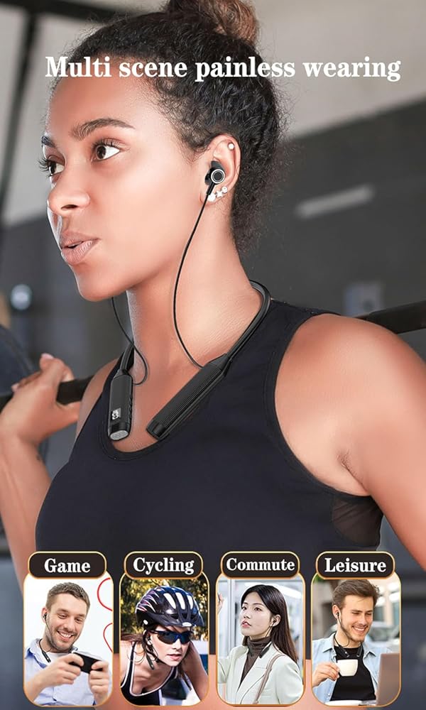 【خفيفة الوزن وقابلة للحمل】إنها مناسبة جدًا لأخذ الحافلة والجري والتسلق وغيرها من المناسبات، ويمكنك الاستمتاع بالموسيقى الرائعة في أي مكان. تلتف سماعات الأذن حول الرقبة للحصول على طريقة رياضية وآمنة لحملها عند عدم الاستخدام.