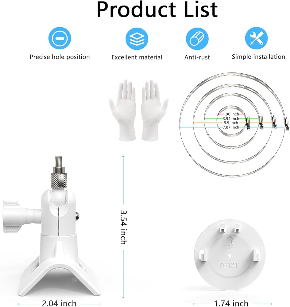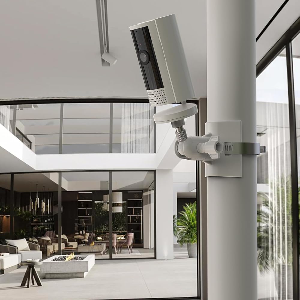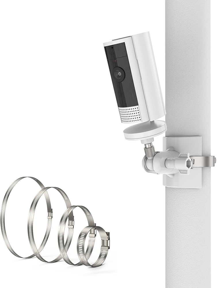 Adjustable Diameter: This pipe water pipe mounting bracket has a flexible ring diameter that can be adjusted from 1.96 inches to 7.87 inches, making your indoor cam (2nd gen) and pan-tilt indoor cam camera more securely mounted.