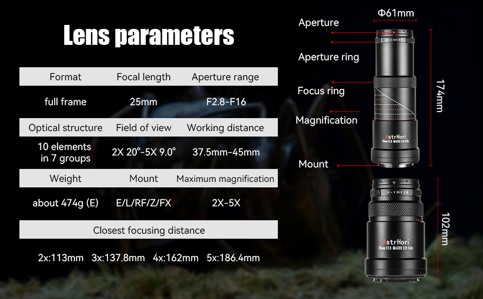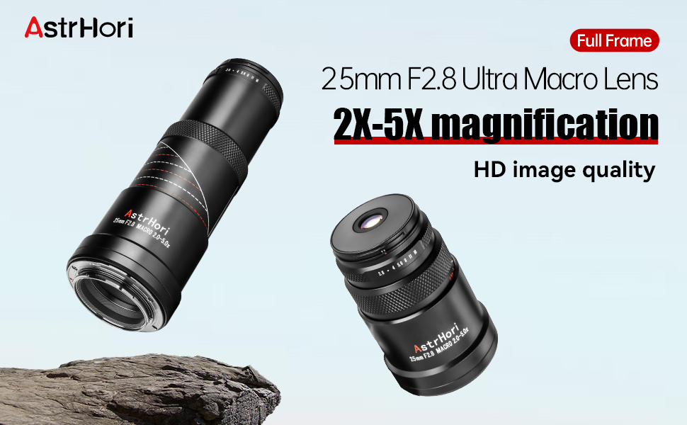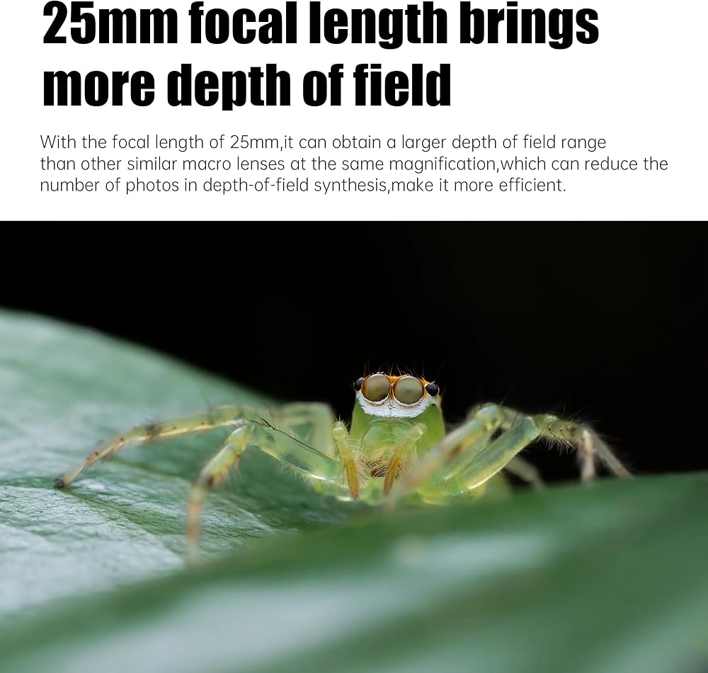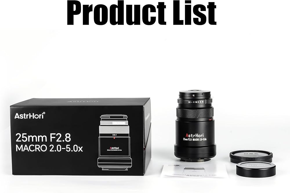 عمق المجال المحسن: يلعب التكوين ذو الزاوية الواسعة لـ AstrHori 25mm f/2.8 دورًا محوريًا في تحسين التصميم عالي التكبير. من خلال توفير عمق أكبر للمجال مقارنة بنظيراتها من العدسات المقربة أو العدسات الطويلة، تضمن هذه العدسة تركيزًا حادًا ومفصلاً على الموضوعات، مما يعزز جودة الصورة الإجمالية.