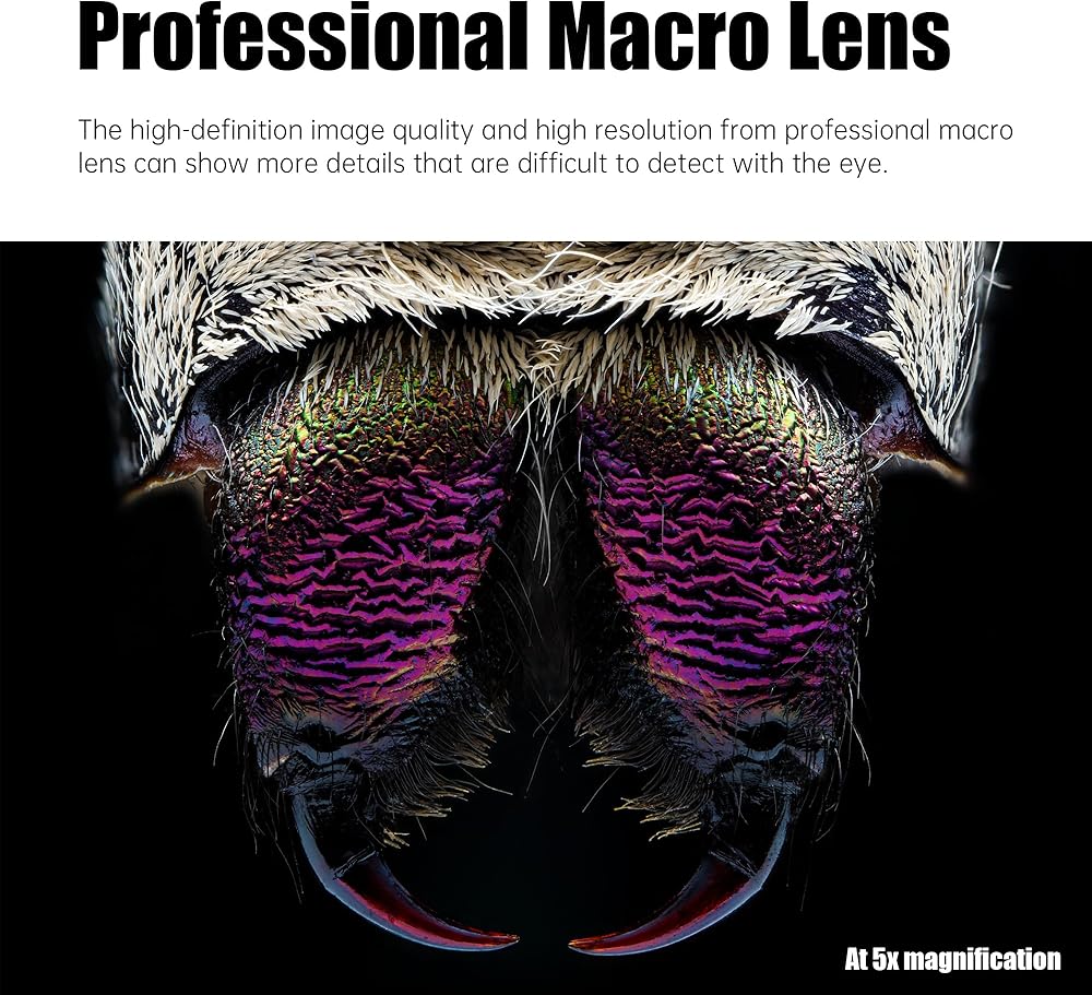 نطاق التكبير 2-5x: مصممة خصيصًا للتصوير الفوتوغرافي الكبير، تتفوق هذه العدسة ضمن نطاق تكبير مخصص 2:1 إلى 5:1. فهي تلتقط صورًا تتجاوز أبعاد الحجم الطبيعي، مما يجعلها خيارًا مثاليًا للقطات التفصيلية والمقربة. والجدير بالذكر أنه لا يدعم التركيز اللامتناهي، مما يؤكد التزامه بتطبيقات الماكرو.