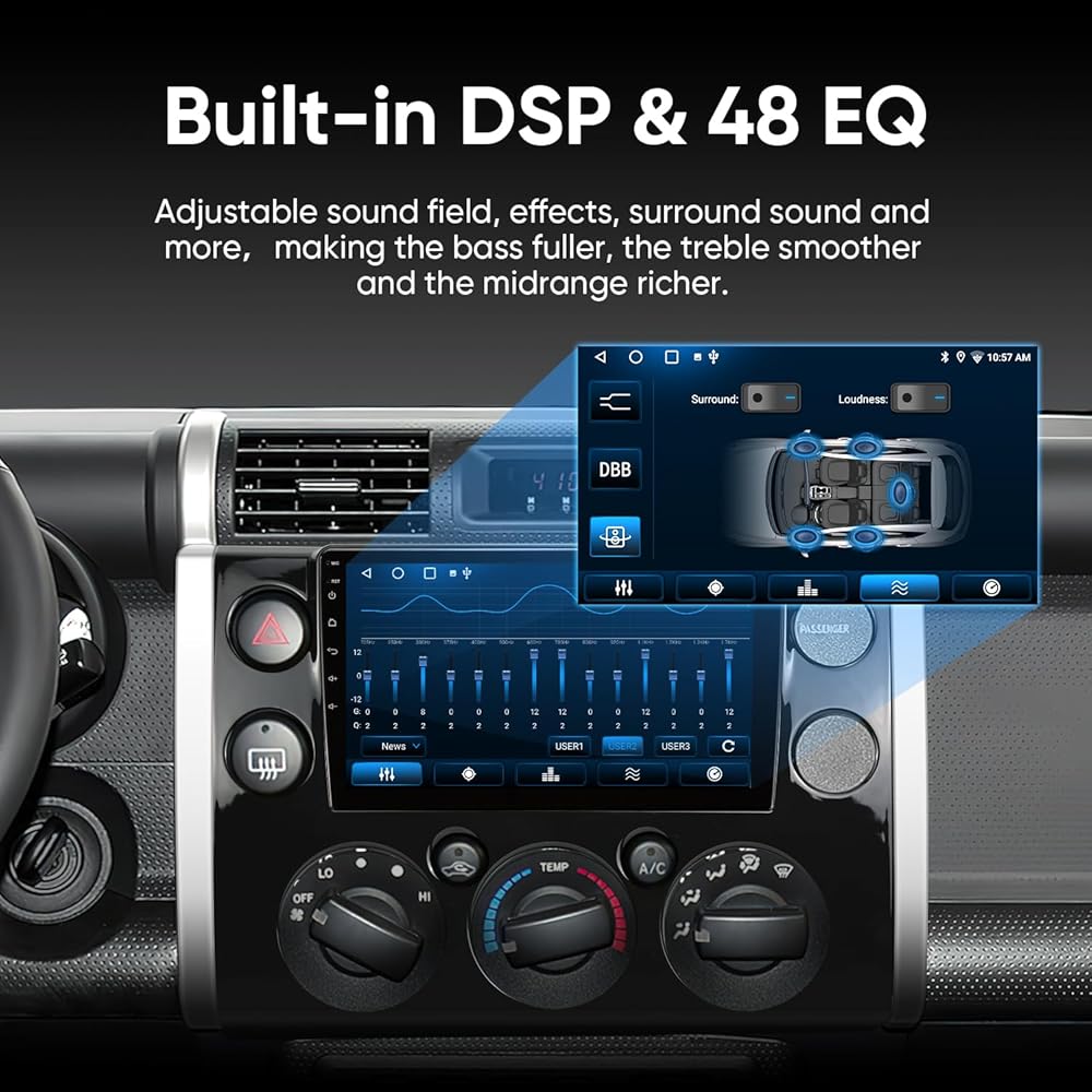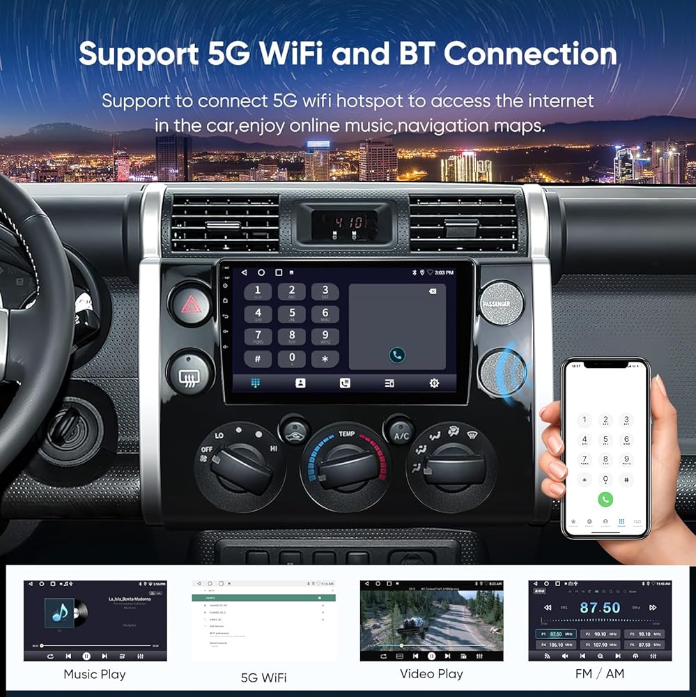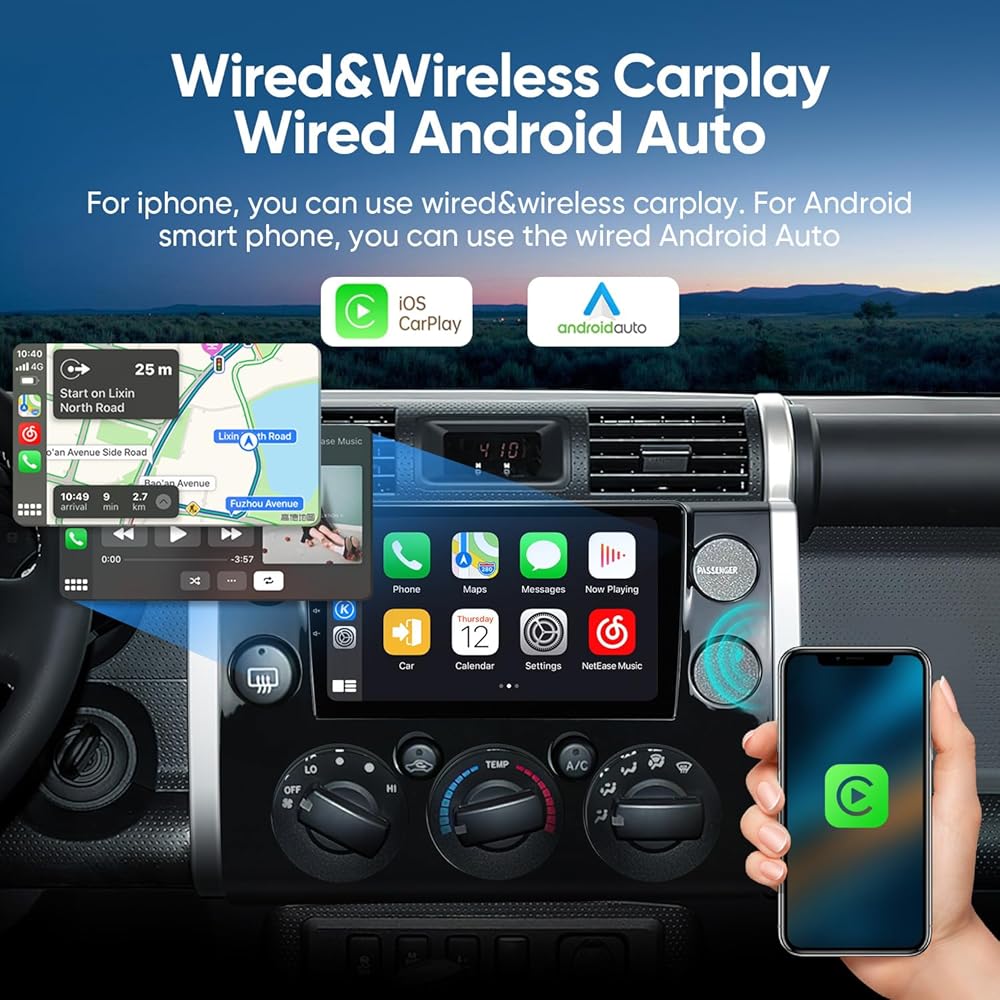 راديو ستيريو للسيارة 2G+64G لسيارة Toyota FJ Cruiser 2007-2018 Android12.0 مع CarPlay Android Auto، FM/AM، بلوتوث، HDMI، ملاحة GPS، وحدة رأس السيارة بشاشة تعمل باللمس 9 بوصة