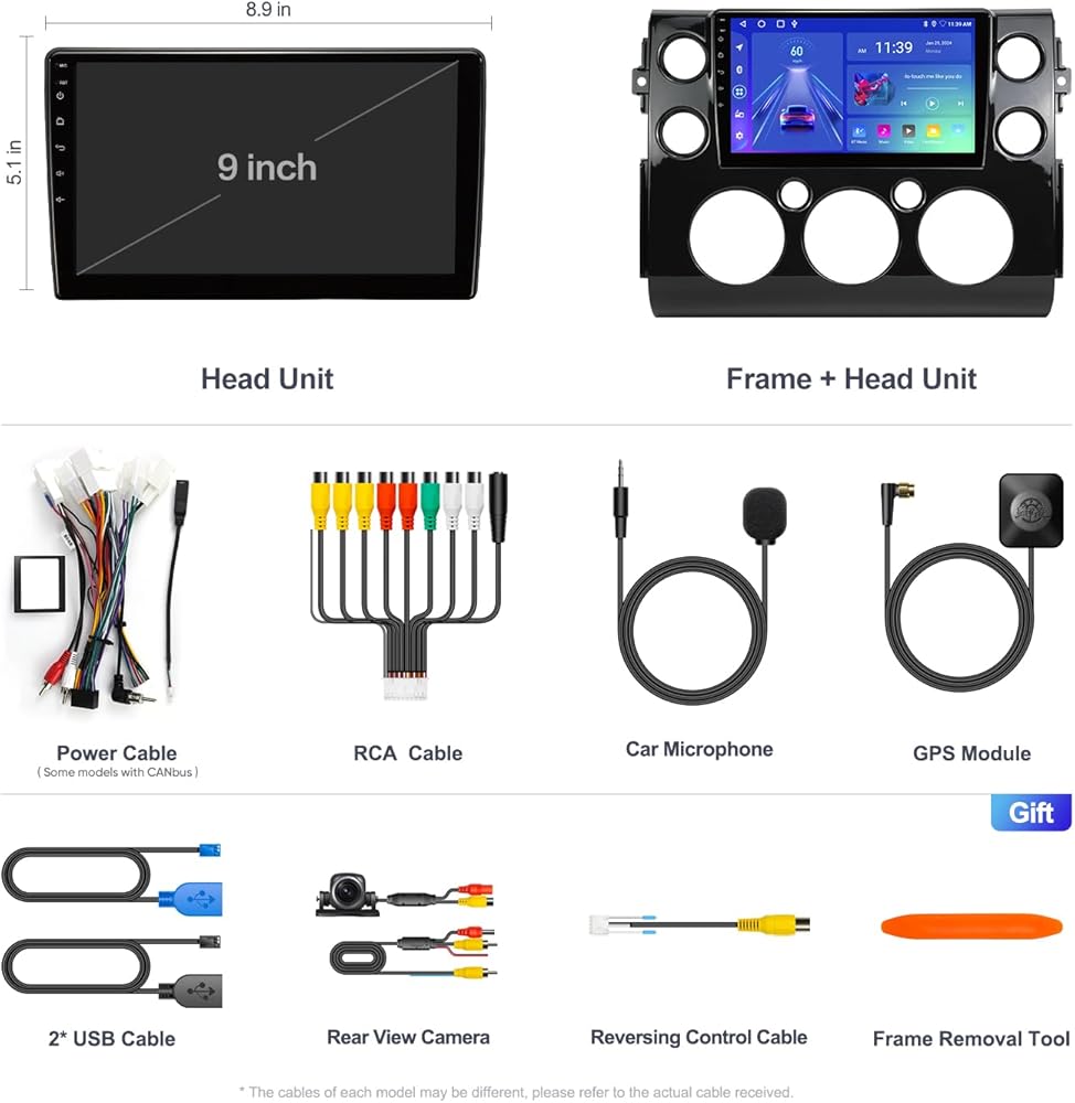 نظام الترفيه متعدد الوسائط للسيارة الذكية من الجيل السادس: مناسب لسيارة Toyota FJ Cruiser 2007-2018 تتضمن الحزمة الوحدة الرئيسية وإطار السيارة وكابلات الطاقة والميكروفون وأدوات الإزالة وكاميرا خلفية 1080 بكسل ونظام تحديد المواقع والتركيب ودليل المستخدم. إنه توصيل وتشغيل (قم بتوصيل الأسلاك بمنافذ السيارة الأصلية، لتجنب تلف أسلاك السيارة الأصلية بشكل فعال). وهو يدعم وظيفة SWC (التحكم في عجلة القيادة).
