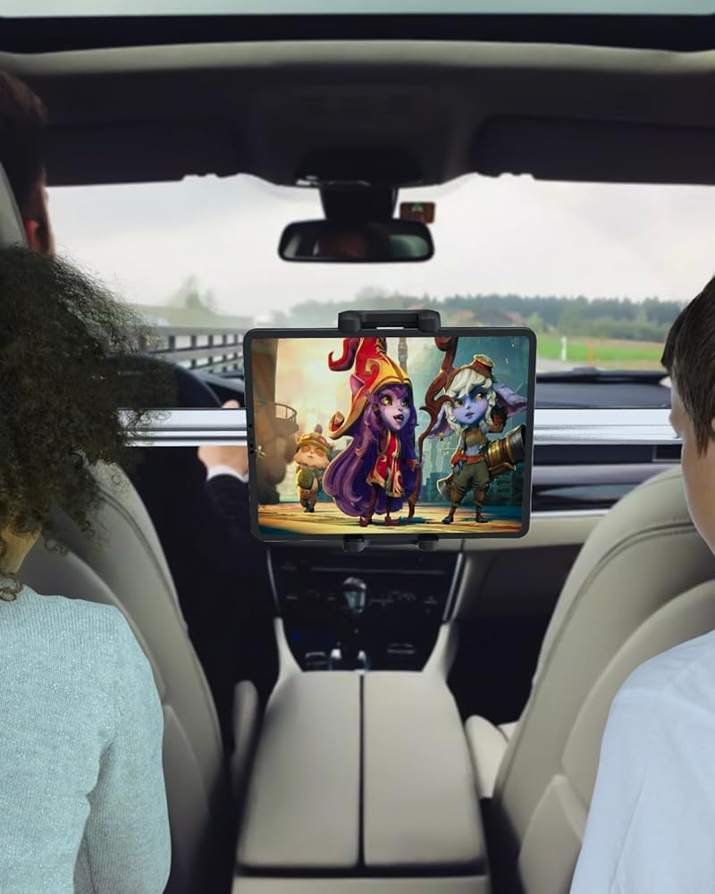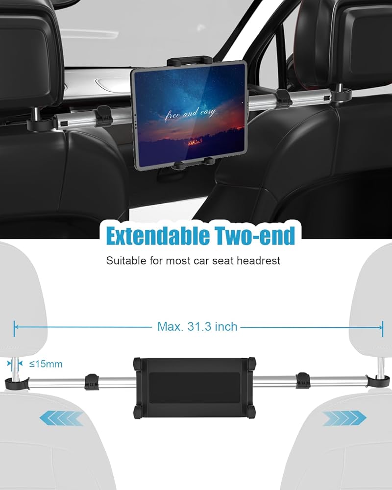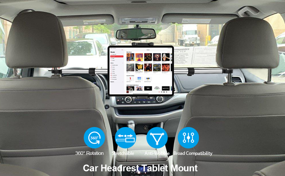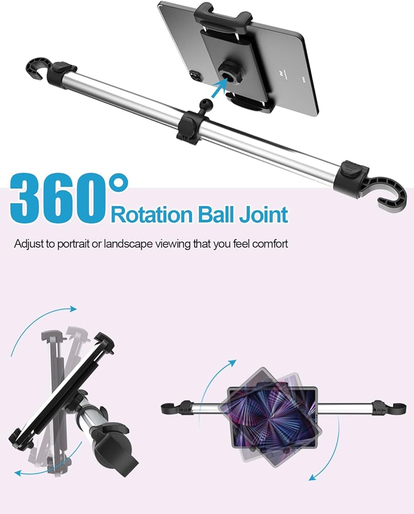 【أفضل زاوية رؤية】 تم تصميم حامل الكمبيوتر اللوحي للسيارة هذا خصيصًا للمقعد الخلفي، ويمكن تعديل حامل الكمبيوتر اللوحي إلى اليسار واليمين، مع دوران 360 درجة وتعديل إمالة 75 درجة، سواء كان راكبًا واحدًا أو راكبين أو ثلاثة ركاب، هذا سيوفر حامل مسند الرأس أفضل وضع للعرض. إنه من الأشياء الأساسية لرحلة الطريق الخاصة بك، أثناء الرحلة، يمكنك استخدامه لتهدئة أطفالك.