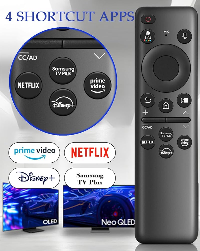 جهاز تحكم عن بعد صوتي متوافق مع جهاز التحكم عن بعد لتلفزيون سامسونج متوافق مع تلفزيون Samsung BN59-01432A Neo QLED OLED 8K HDR الذكي (بدون طاقة شمسية، بدون USB)