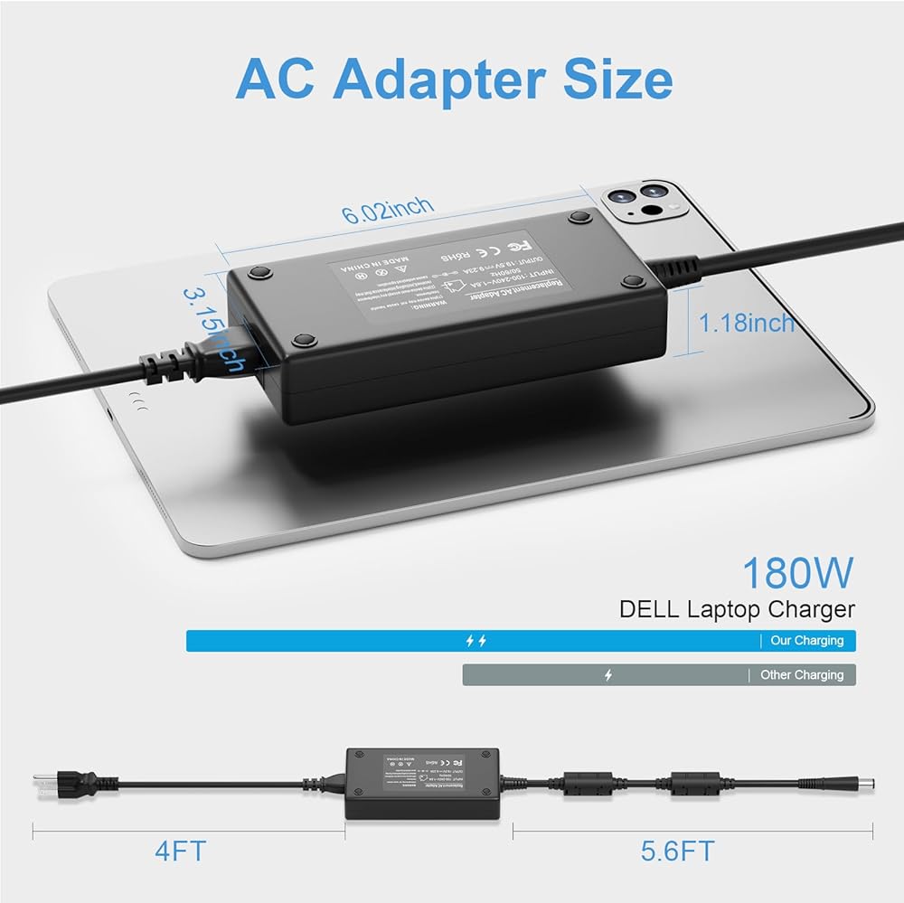 نماذج متوافقة: يصلح لديل الدقة 7510 7520 7530 7540 7550 7560 FA180PM111 HA180PM180 DA180PM111 7680 7670 7770 7780 M4600 M4700 M4800 M6300 M6600 M6700 M6800 شاحن الكمبيوتر المحمول