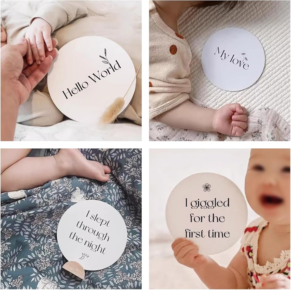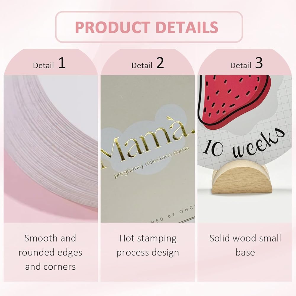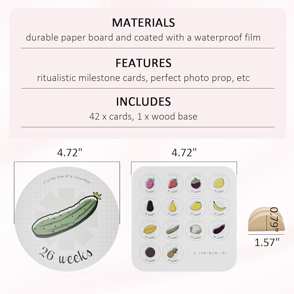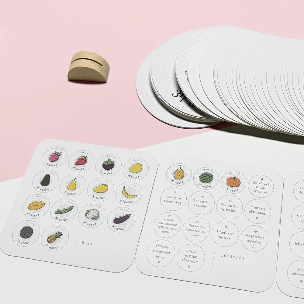 WAYUTO بطاقات مرحلة الحمل لرحلة الحمل من 8 إلى 40 أسبوعًا وبطاقات اللحظة الأولى لمتتبع عثرة الطفل الأسبوعي مع قاعدة خشبية، بطاقات دعامة للصور، هدايا للأمهات الحوامل