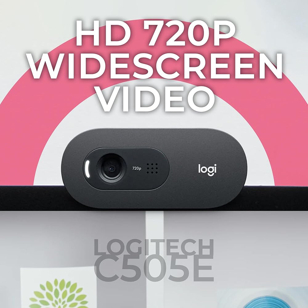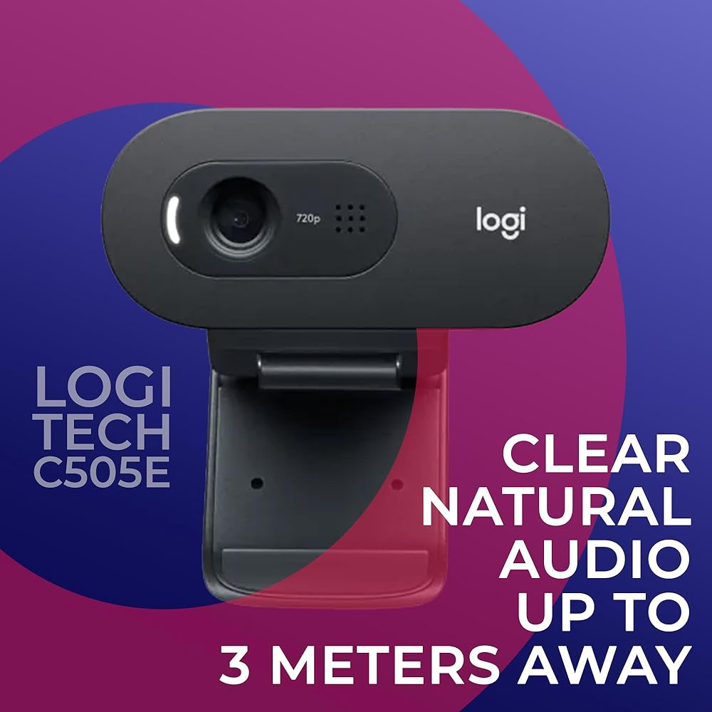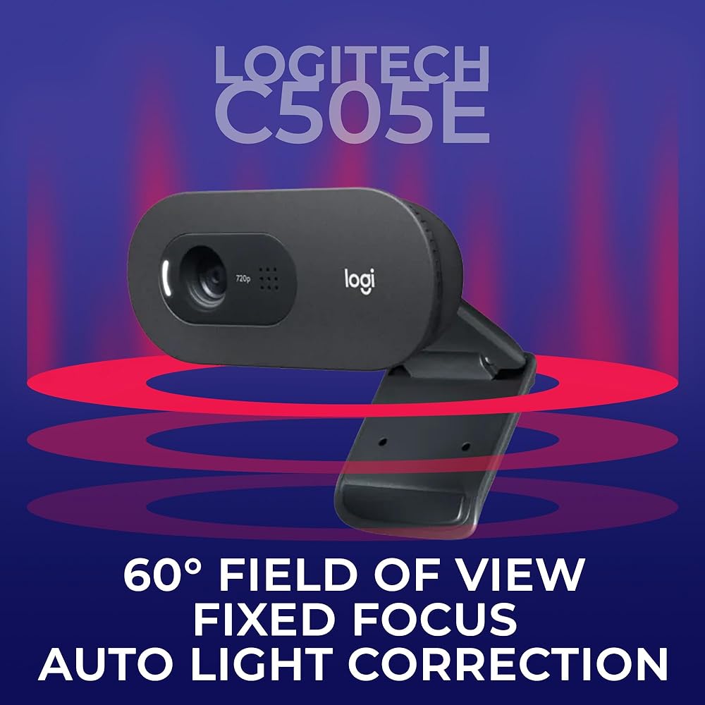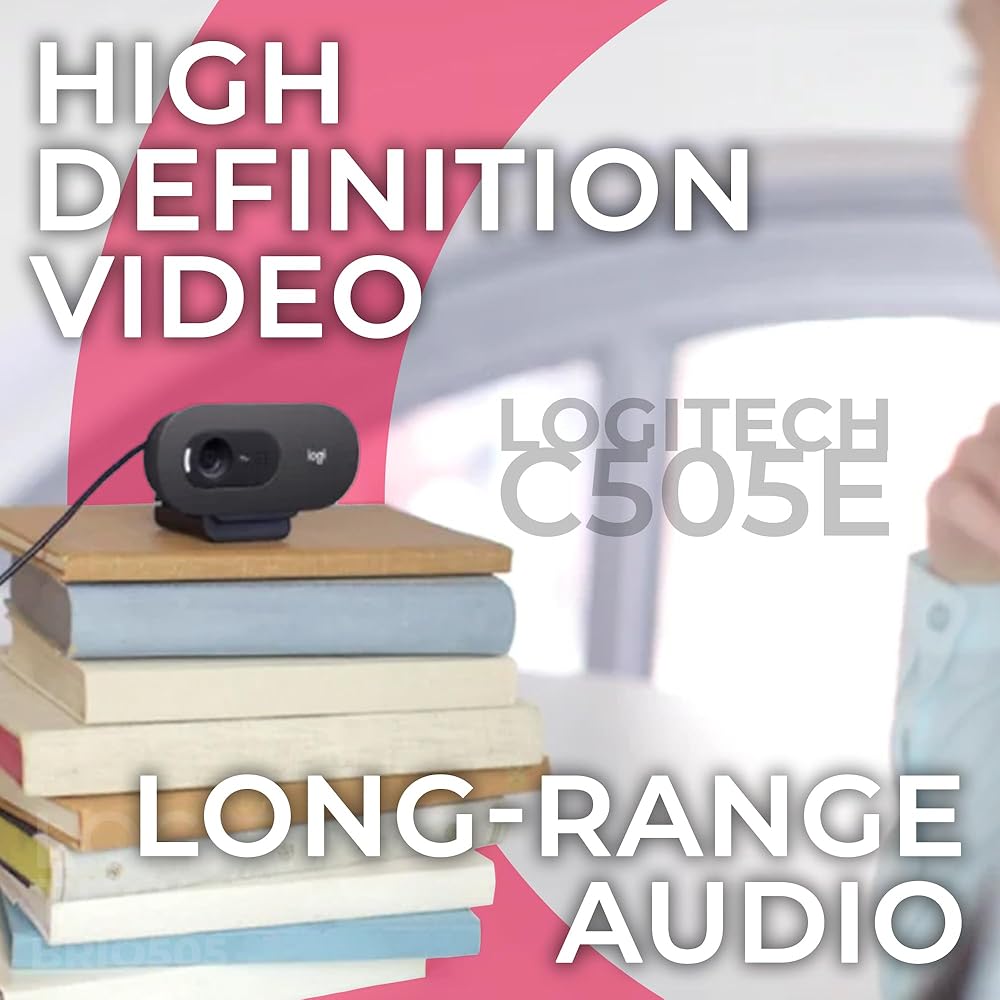 كاميرا ويب Global Teck Worldwide Logitech C505E HD للأعمال (أسود) - HD 720p، ميكروفون طويل المدى، USB-A ومشبك عالمي - متوافق مع Windows/macOS/ChromeOS - مرفقة مع قماش GTW
