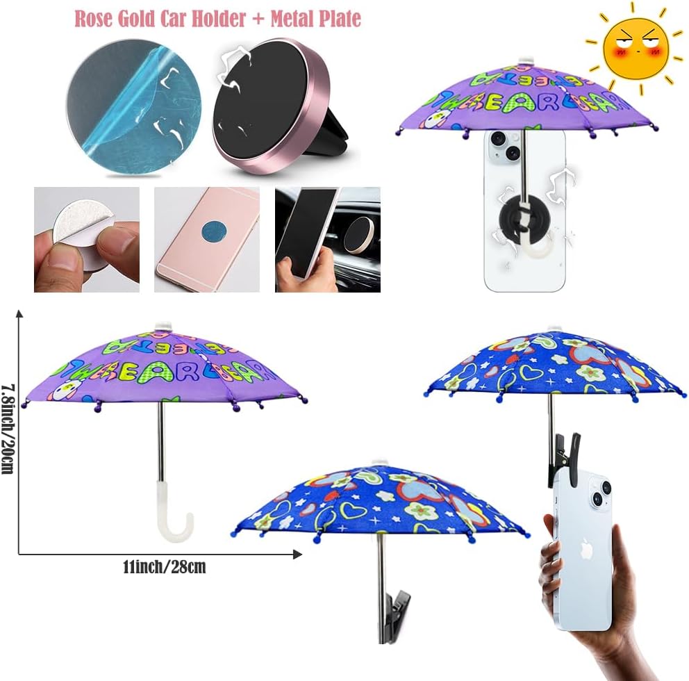 ☂ Multifunction: Our mini umbrella can not only dress up your cute doll, but also be used to protect your cell phone from the sun to prevent the sun from getting too hot and causing damage to your cell phone. It can also be used as a prop to make your photos more interesting. The phone umbrella for sun is perfect gift for family, friends, lovers, children.