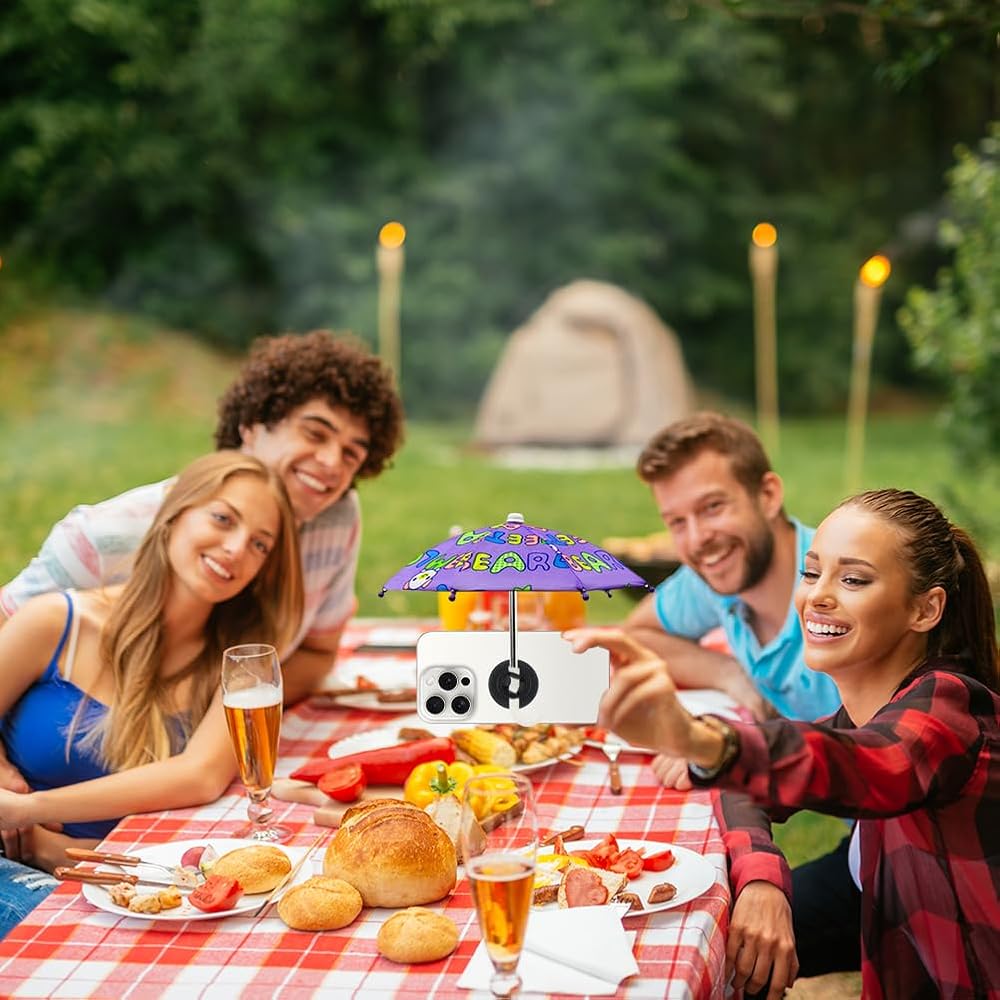 ⛱️Unique Design: which can be used as a mobile phone holder. This phone umbrella keeps your phone dry in rainy days and offer sunshade and light-proof umbrella for phone, you will get a lot of compliments and it is very attractive.