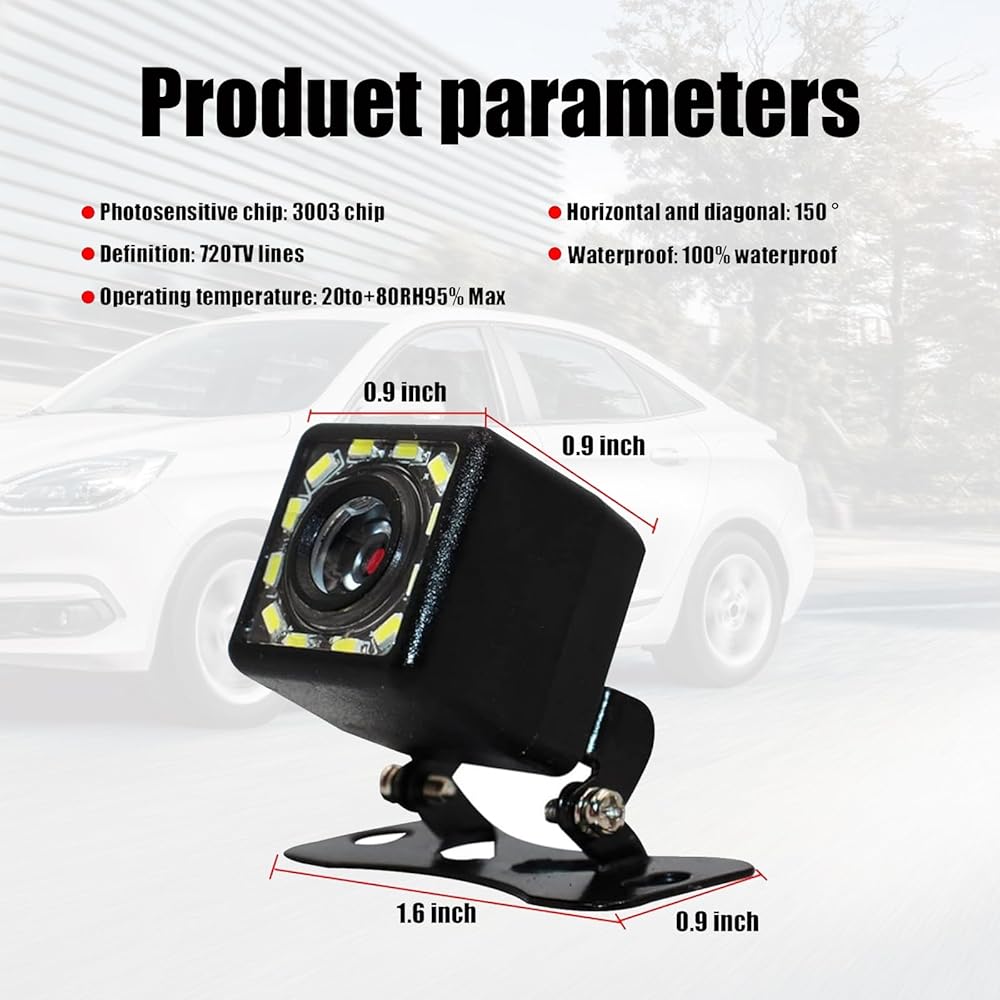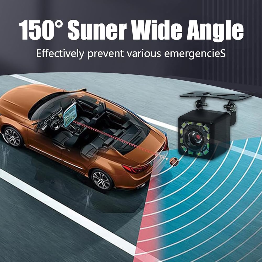150 Degree Adjustable Viewing Angle: TThe rear view camera has a perfect 150 degree adjustable viewing angle, which reduces blind spots and ensures that you can see sufficient field of vision. When parking and reversing, you can more fully detect obstacles behind the car and avoid collisions. Allows you to adjust the camera to the position that best suits you, effectively reducing the accident rate.