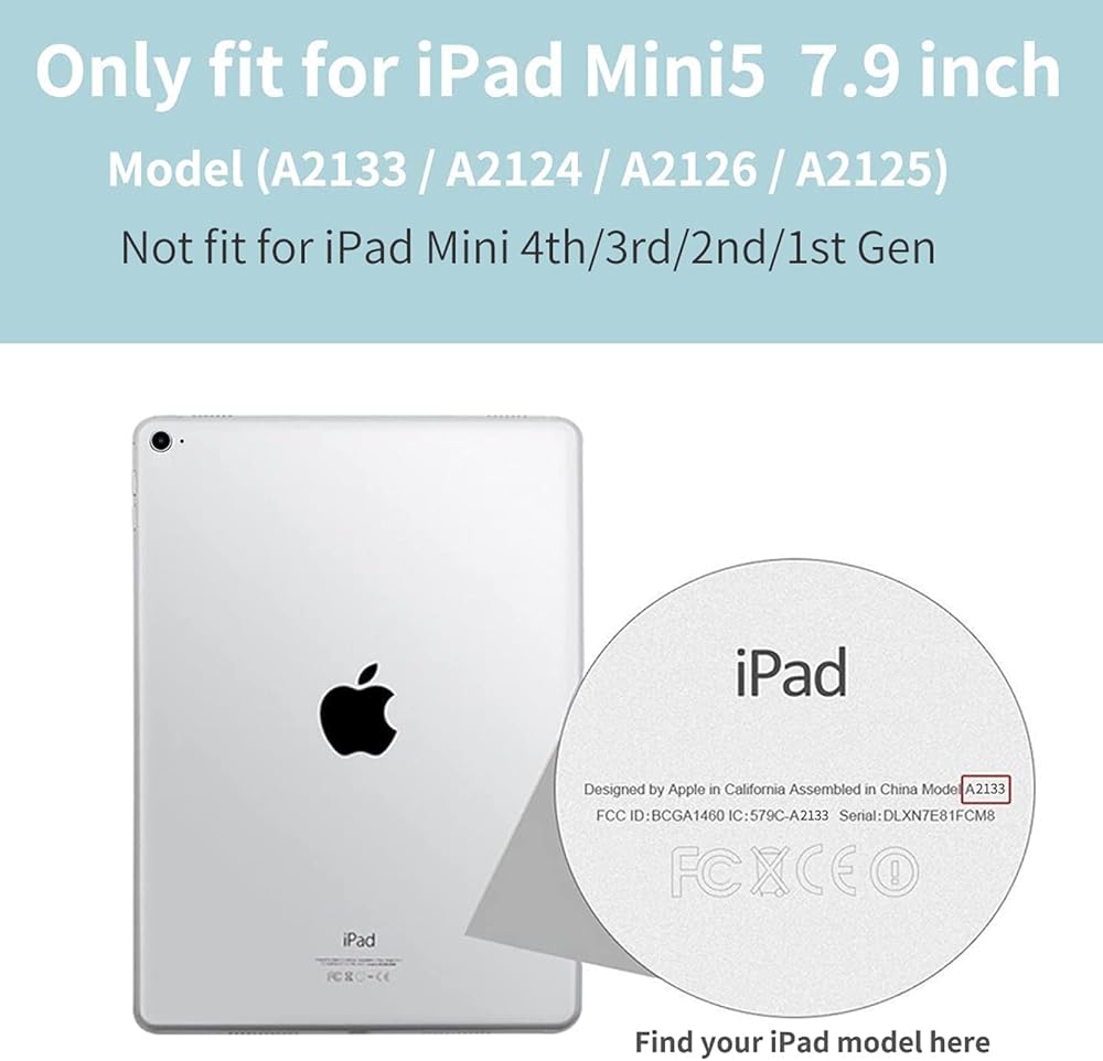 الملاءمة: مصمم حصريًا لجهاز iPad Mini 5 لعام 2019 (الجيل الخامس من iPad mini، رقم الموديل: A2133 A2124 A2126 A2125). غير متوافق مع أي أجهزة أخرى