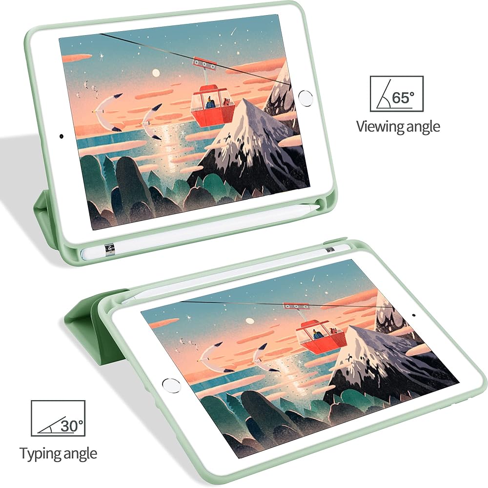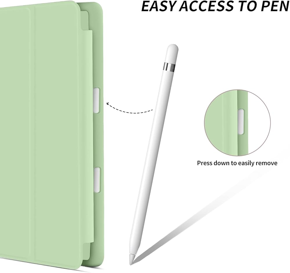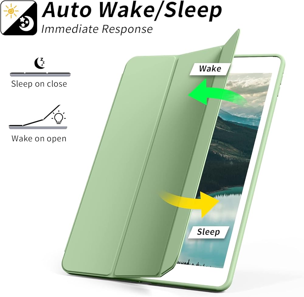 تصميم احترافي: يعمل على تنشيط جهازك أو وضعه في وضع السكون تلقائيًا عند فتح الغطاء وإغلاقه. استجابة سريعة تبلغ 0.1 ثانية للنوم/الاستيقاظ التلقائي لجهازك لتقليل الطاقة. يعمل الحامل المغناطيسي القوي ثلاثي الطيات على إنشاء وضع عرض وكتابة ثابت لجهاز iPad الخاص بك