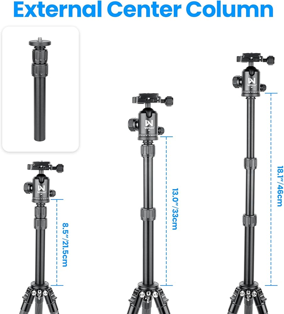 جودة فاخرة: الحامل ثلاثي القوائم المدمج مصنوع من مادة ألياف الكربون عالية الجودة وسبائك الألومنيوم، وهي ثابتة ومتينة. وفي الوقت نفسه، تعمل مادة ألياف الكربون أيضًا على تقليل وزن حامل الكاميرا الثلاثي