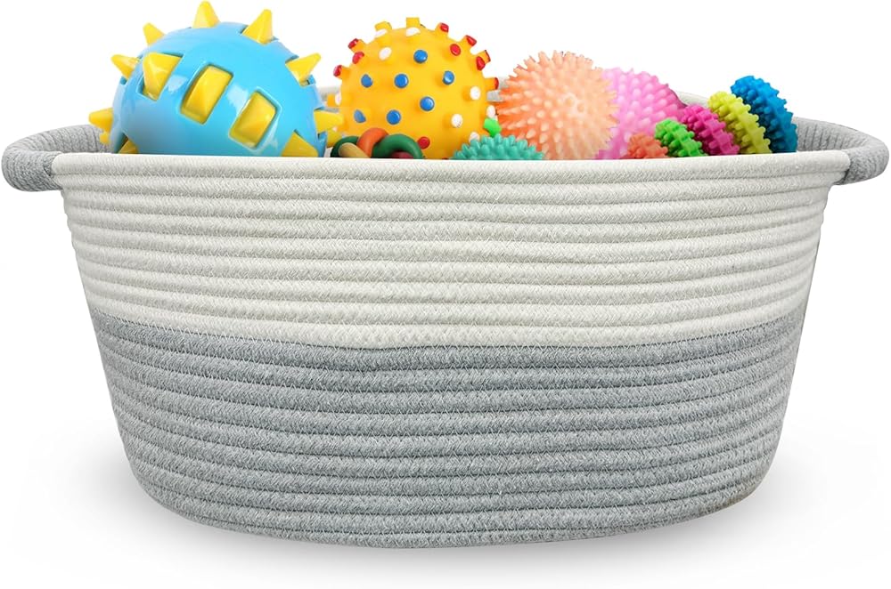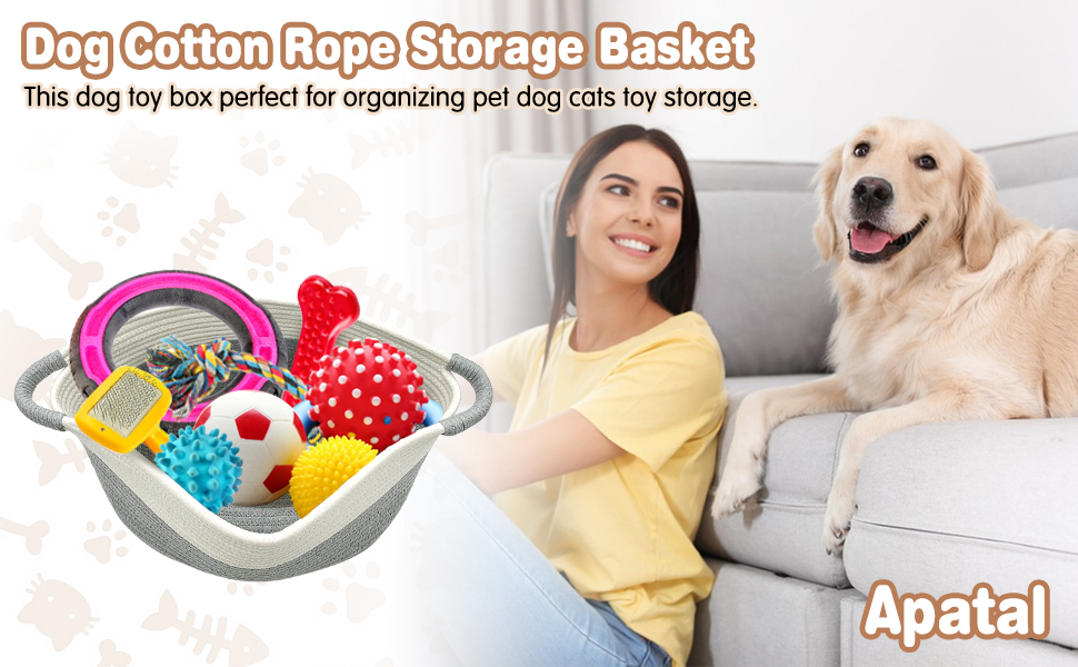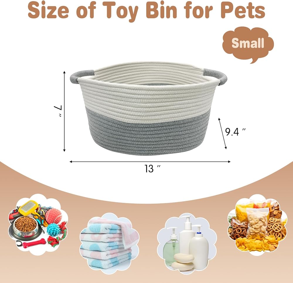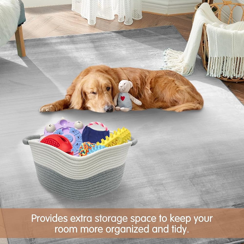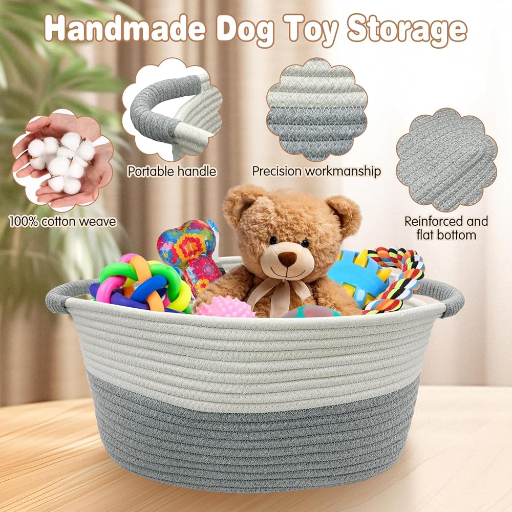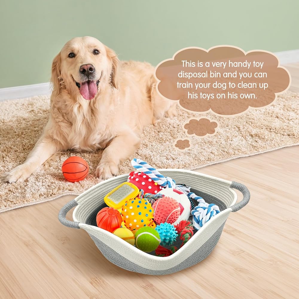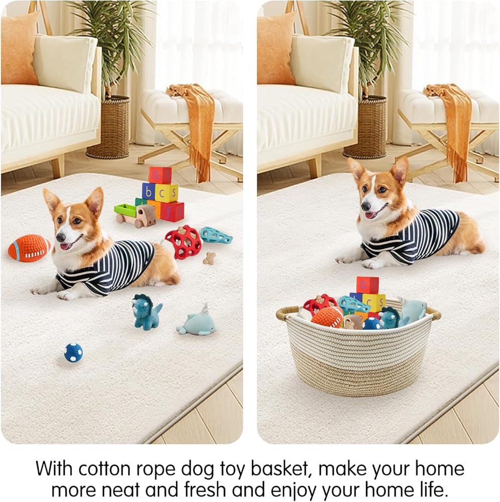 صندوق تخزين ألعاب الكلاب مصنوع يدويًا: مصنوع من حبل منسوج من القطن بنسبة 100%، والقطن الناعم والكتان منسوج يدويًا في صندوق تخزين ألعاب الحيوانات الأليفة المثالي، سطح أملس يحمي يديك، آمن تمامًا للحيوانات الأليفة؛ يمكنك بسهولة تخزين جميع مستلزمات صديقك ذات الأرجل الأربعة