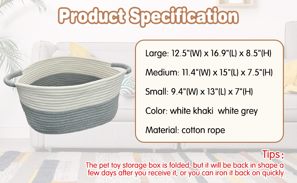 احتياطات السلة المنسوجة من الحبال القطنية: يتم طي صندوق تخزين ألعاب الحيوانات الأليفة من أباتال، ولكنه سيعود إلى شكله بعد استلامه لبضعة أيام، أو يمكنك كيه مرة أخرى بسرعة
