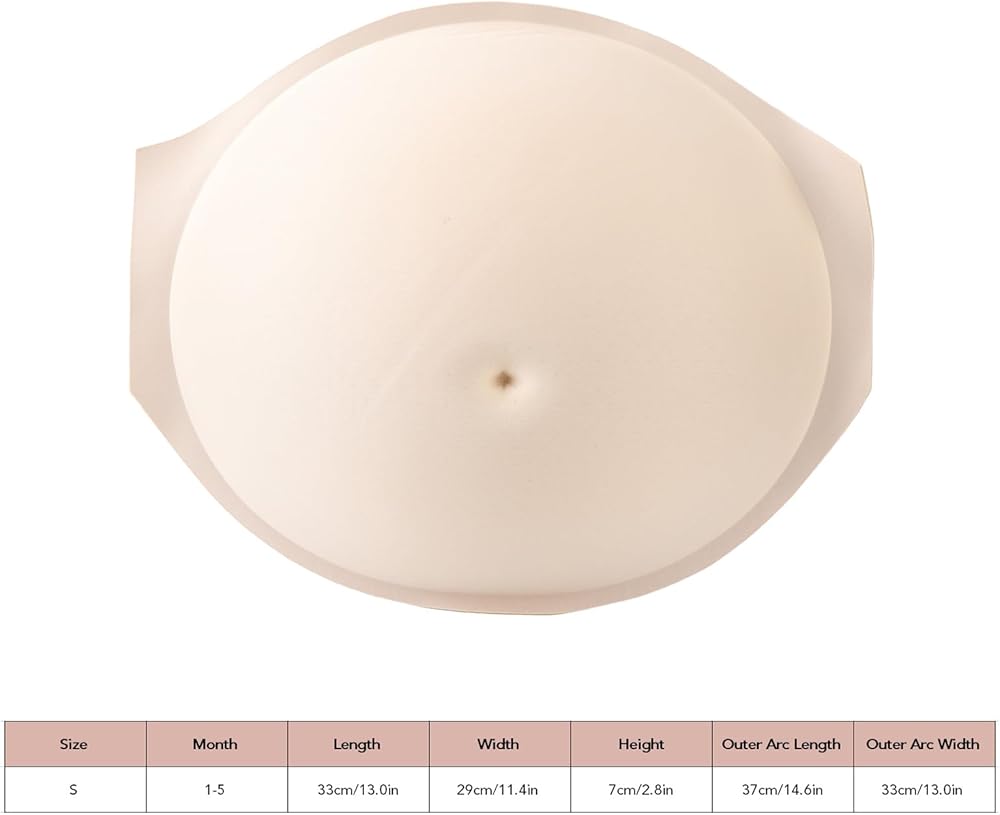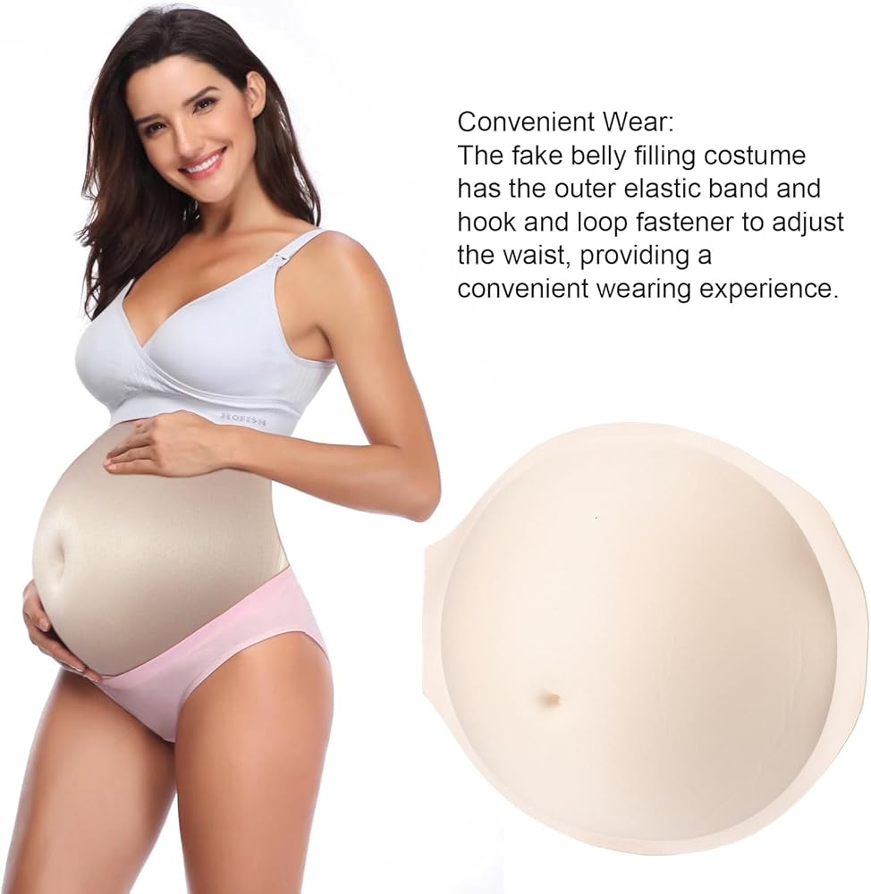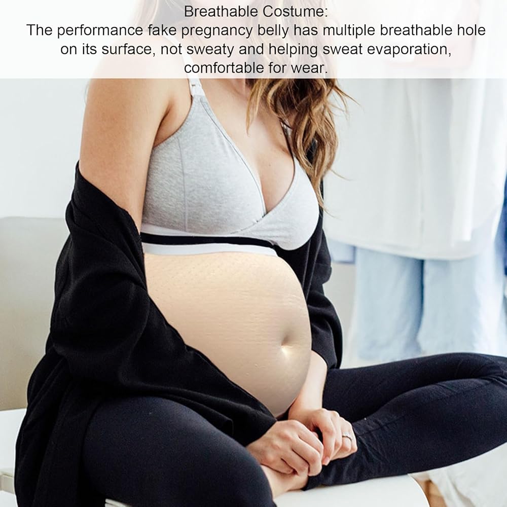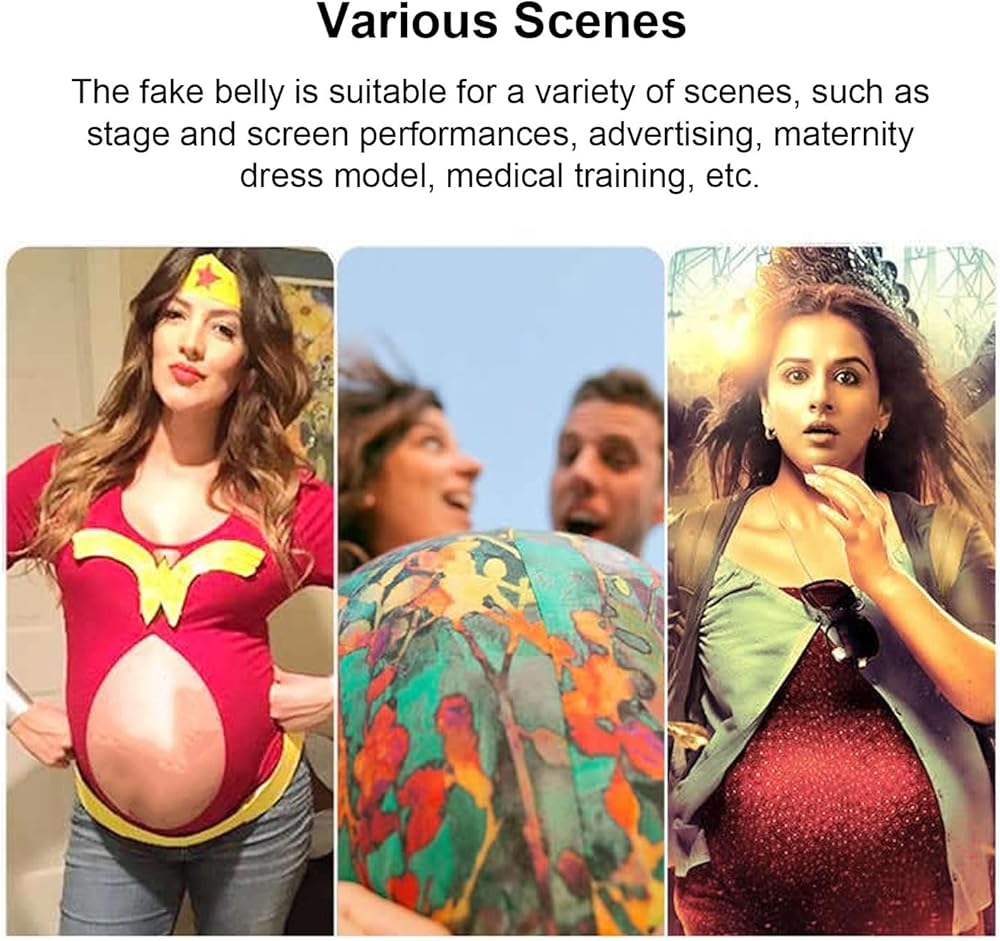 5. Various Scenes: The fake belly is suitable for a variety of scenes, such as stage and screen performances, advertising, maternity dress model, training, etc.