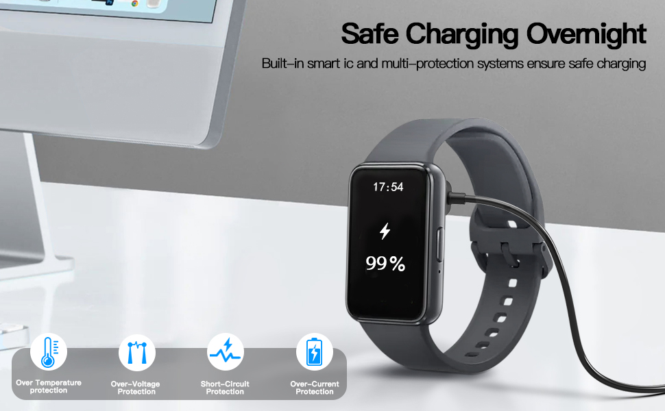 【شحن آمن】يحتوي كابل الشحن AWINNER على منظم جهد كهربائي وPTC بالداخل لحماية جهازك من التلف بسبب التيار الزائد عند توصيله بمصدر الطاقة. مصنوعة من حماية من الجهد الزائد والتيار الزائد، وسوف تحمي ساعتك من التلف عند الشحن