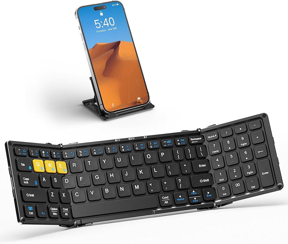 【لوحة مفاتيح متعددة الوظائف ذات 18 مفتاحًا】لوحة المفاتيح الرقمية تجعل لوحة المفاتيح القابلة للطي أكثر تنوعًا ومناسبة للمستخدمين الذين يحتاجون إلى القيام بالكثير من المدخلات الرقمية، مثل الأعمال المالية أو المحاسبة أو إدخال البيانات. توفر لوحة المفاتيح القابلة للطي المزودة بلوحة مفاتيح رقمية تجربة مماثلة للوحة المفاتيح التقليدية كاملة الحجم، ولكن مع المزيد من المرونة والراحة، تساعدك على زيادة سير العمل والكفاءة.