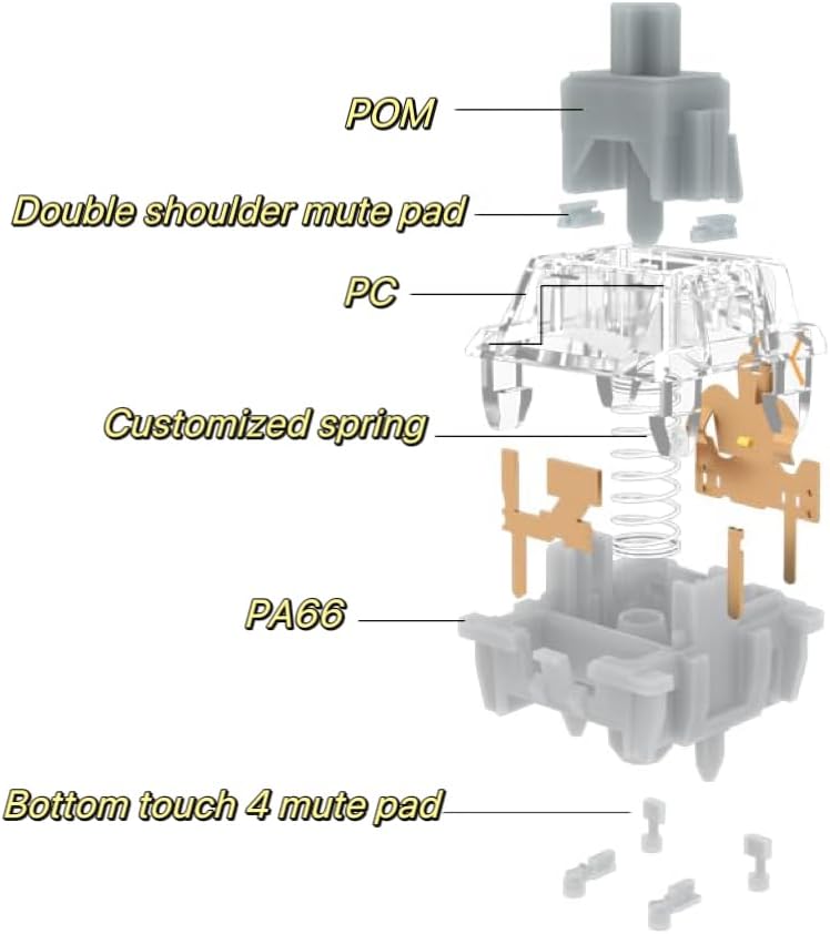 - [الجودة] مفاتيح Gateron aliaz silnet الوردية هي مفاتيح ذات 5 سنون، وهيكل 5 سنون أكثر موثوقية لمفاتيح المفاتيح.