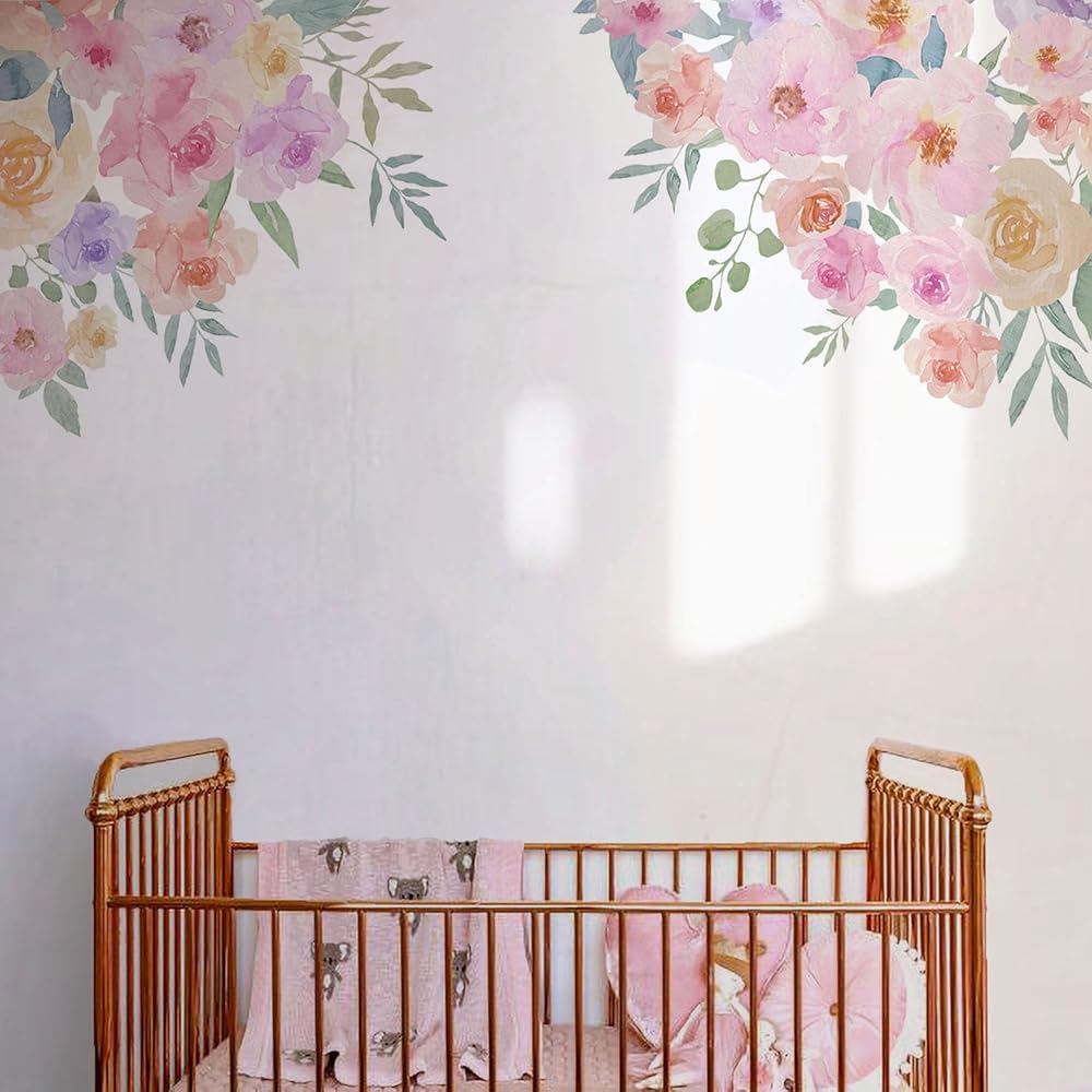 Add to right style to your living space with the watercolor colorful floral wall murals.