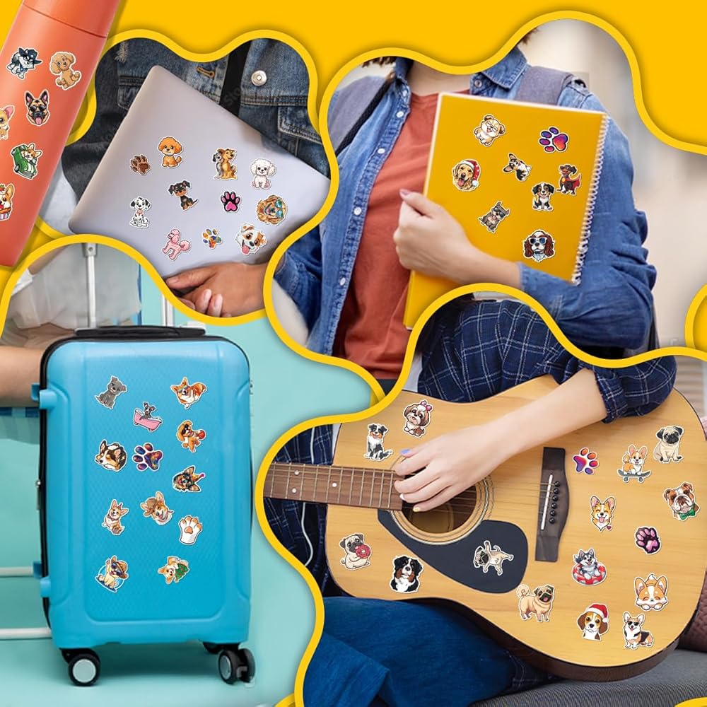 100 قطعة من ملصقات الكلاب اللطيفة، ملصق جرو للأطفال، ملصقات مضادة للماء للكلاب لزجاجات المياه والكمبيوتر المحمول وأمتعة الكمبيوتر والمراهقين والبالغين والبنات والأطفال وديكورات حفلات أعياد الميلاد المضحكة