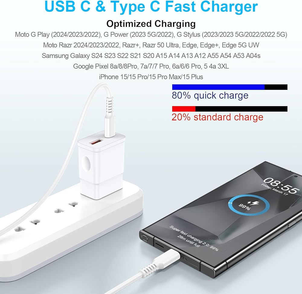 1.Samsung super fast charger charge Samsung Galaxy A15 5g/A14 5g/A35 from 0 to 55% in 30 minutes, full charge in only 1 hour, 5 times faster than 5W USB charger.